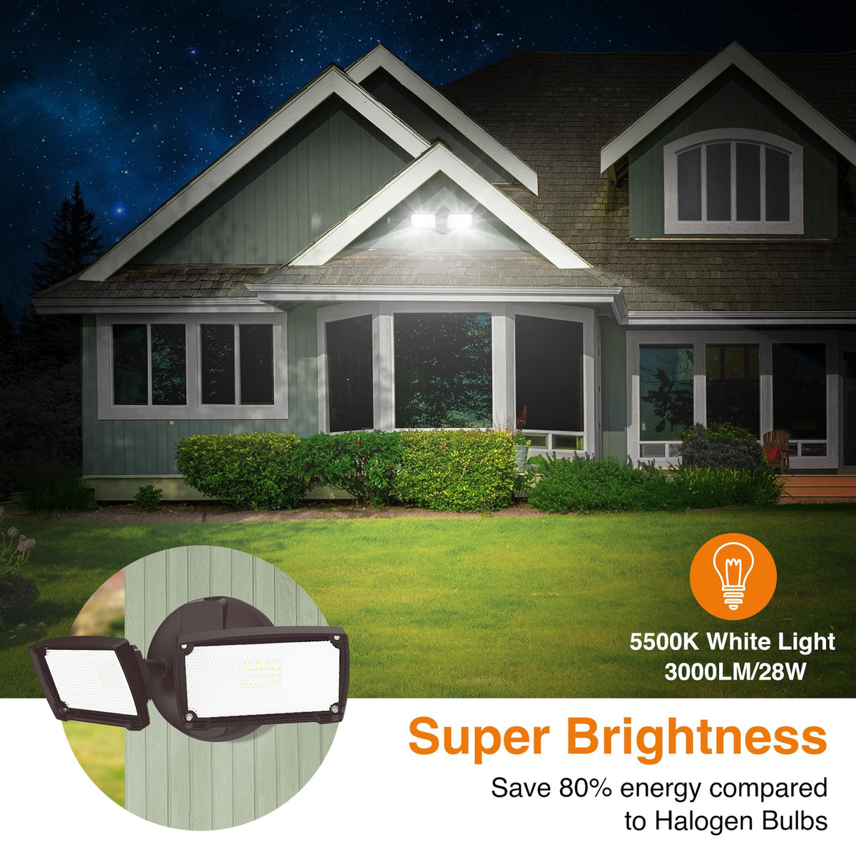 Lepower 3000Lm Led Flood Light Outdoor, Switch Controlled Led Security Light, 28W Exterior Lights With 2 Adjustable Heads, 5500K