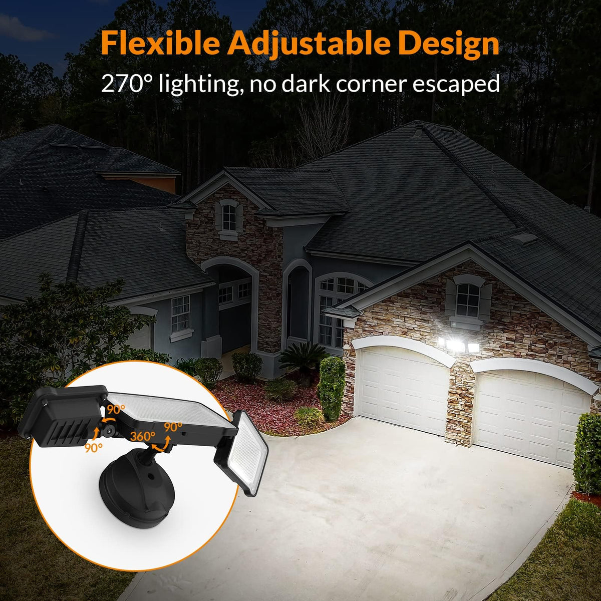 LEPOWER 3500LM LED Flood Light Outdoor, Switch Controlled LED Security Light, 35W Exterior Lights with 3 Adjustable Heads, 5500K