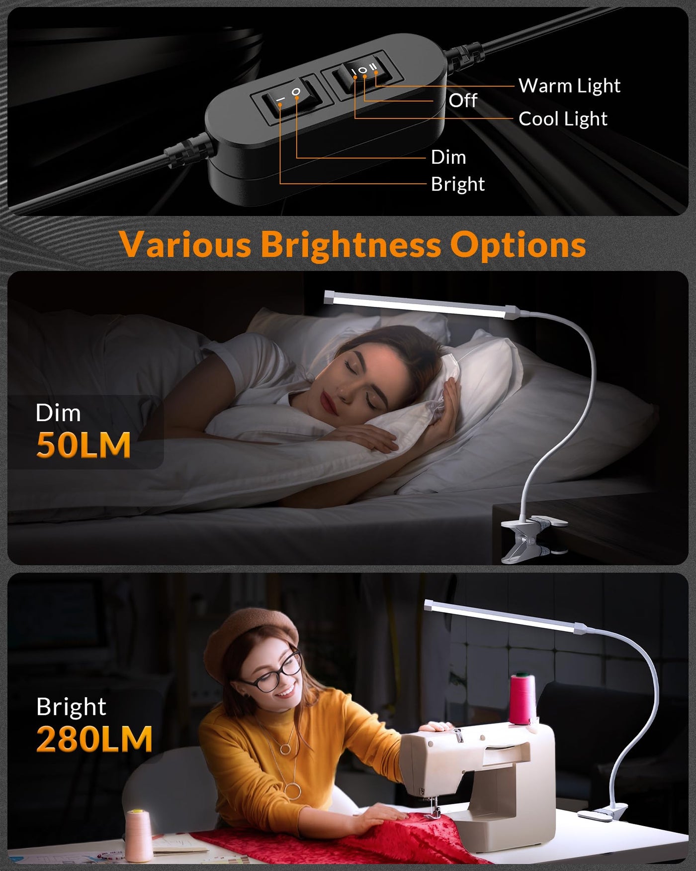 Q: Is the gooseneck flexible for positioning the light?A: Yes, the gooseneck design of the LEPOWER Clip on Lamp provides excellent flexibility, enabling you to easily adjust the angle and direction of the light to focus it exactly where you need it.