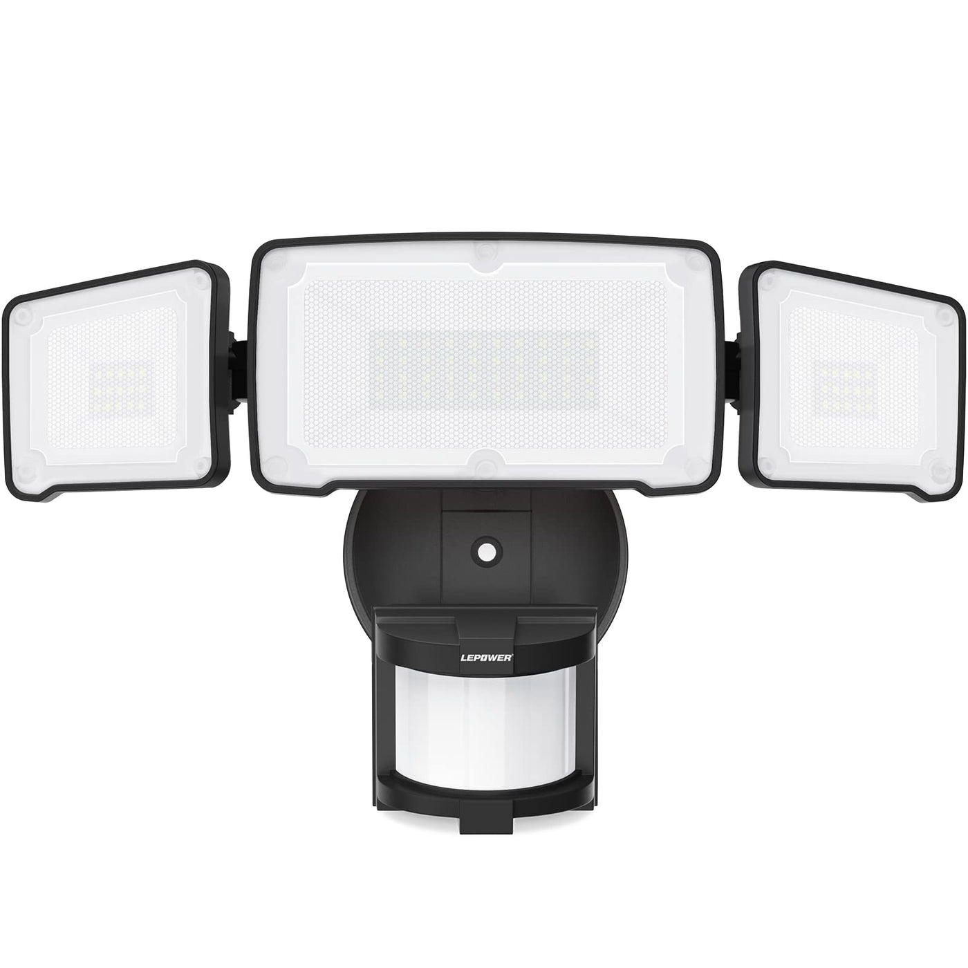 Lepower Led Motion Sensor Security Lights, 3 Head Motion Detected, 38W, 4200Lm, Waterproof Ip65, 5500K, Full Metal For Outdoor,