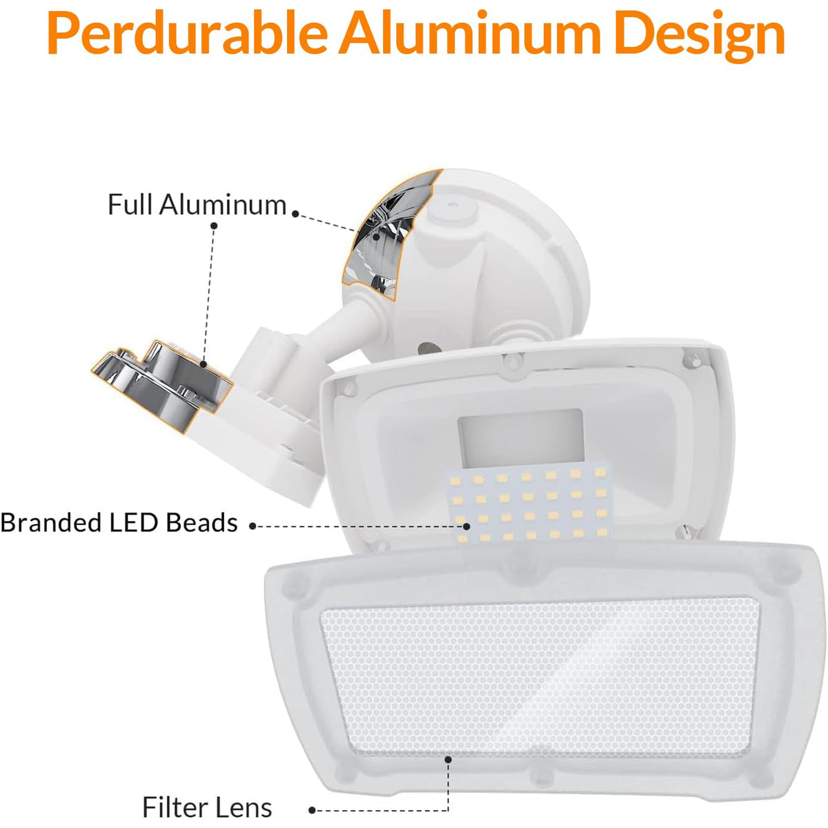 - **Dual Adjustable Heads**: Designed with two adjustable light heads, this flood light provides a wide 270° lighting angle, ensuring shadow-free illumination for areas such as backyards, garages, patios, and more.