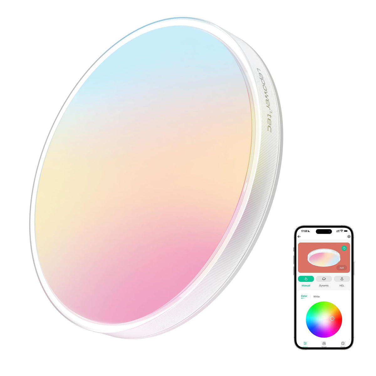 Lepower-Tec Smart Ceiling Light, Rgbww Flush Mount Ceiling Light, 3200 Lm Dimmable Led Lights Fixture, Compatible Alexa, 2700K-6