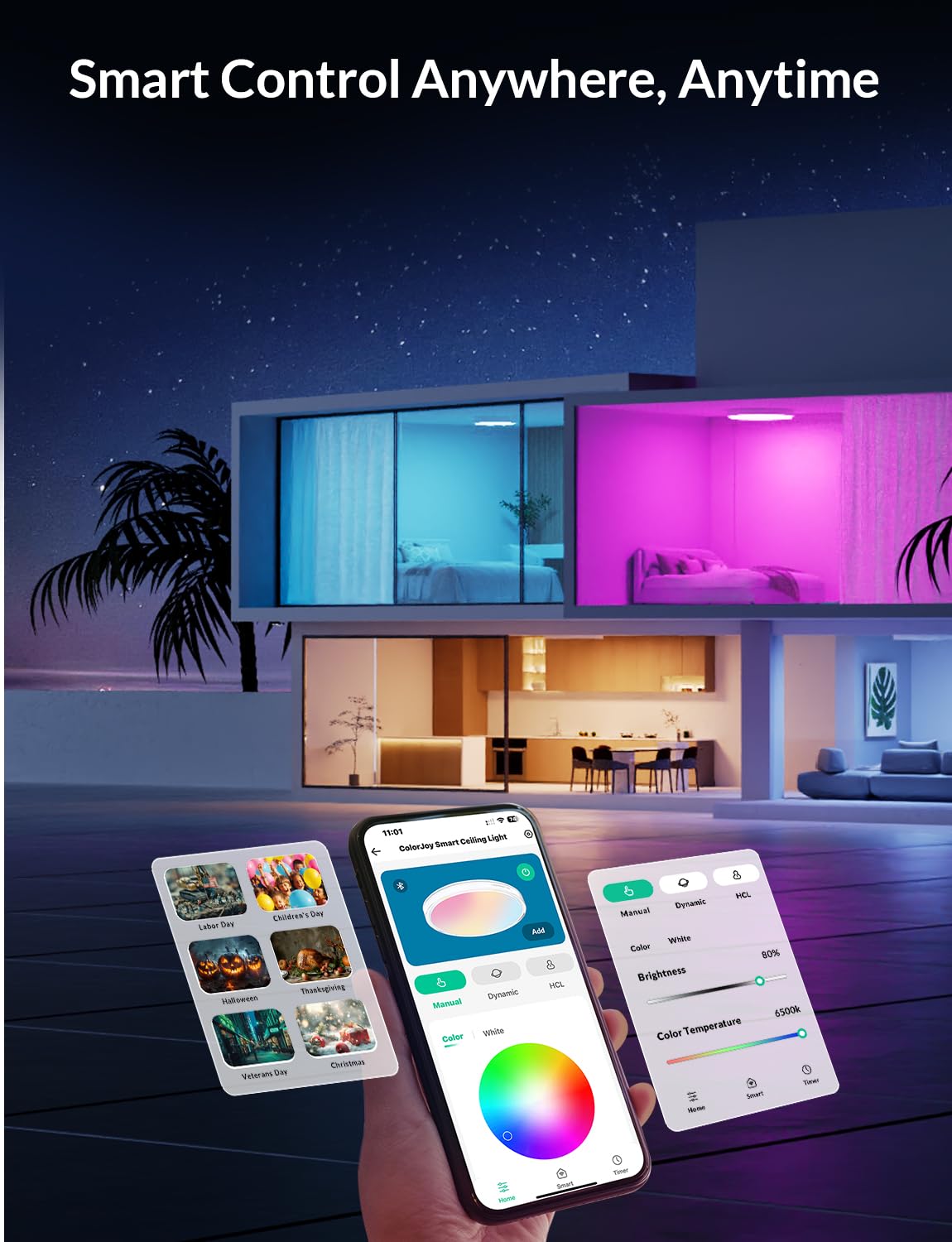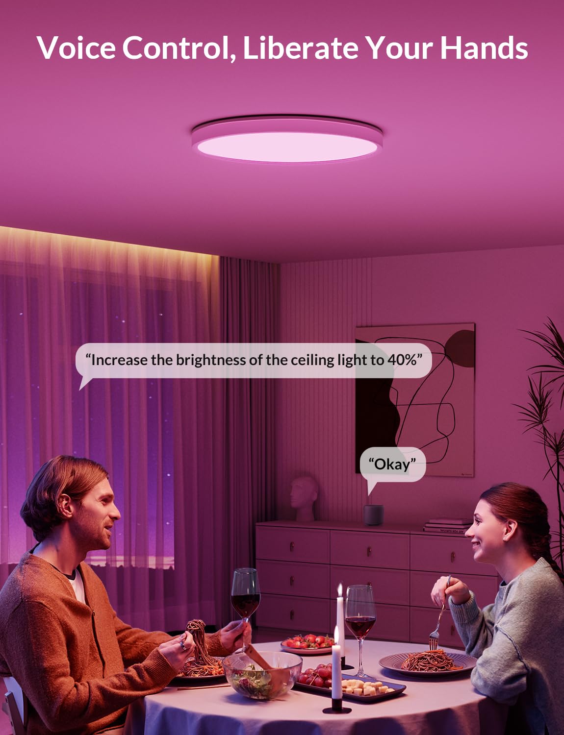 Q: Can I customize the lighting scenes with this ceiling light?A: Yes, the ceiling light features over 28 dynamic lighting scenes that can be personalized for various moods, events, or activities, enhancing your ambiance.