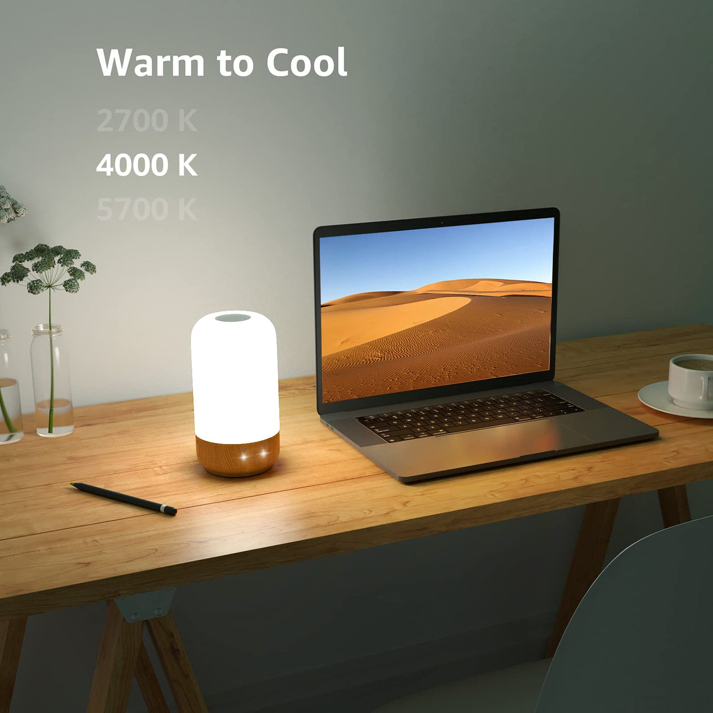 Lepro Led Touch Table Lamp, Dimmable Rgb Night Light With Auto-Off Timer, Light Wood Grain