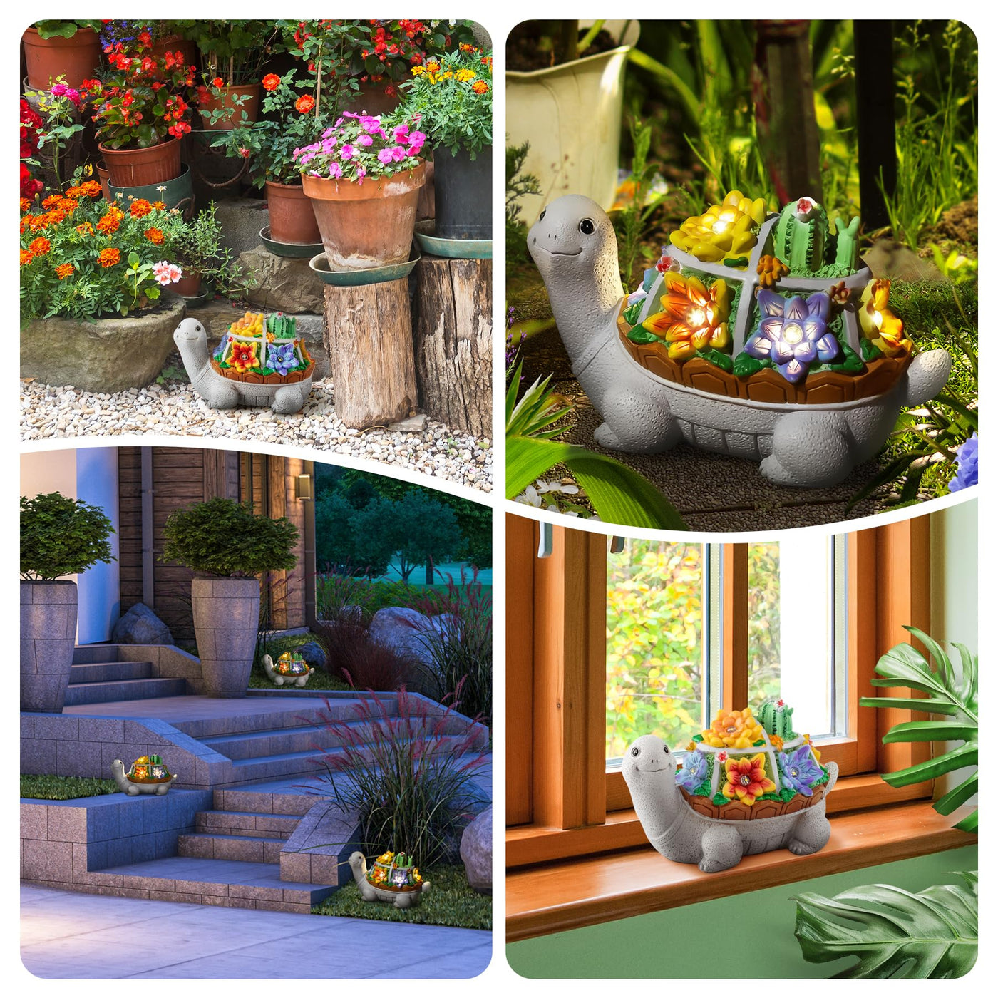 LESES Turtle Garden Decor for Outside Solar Statue Outdoor Clearance, Cute Turtle Solar Statues with LED Lights Lawn Ornaments D