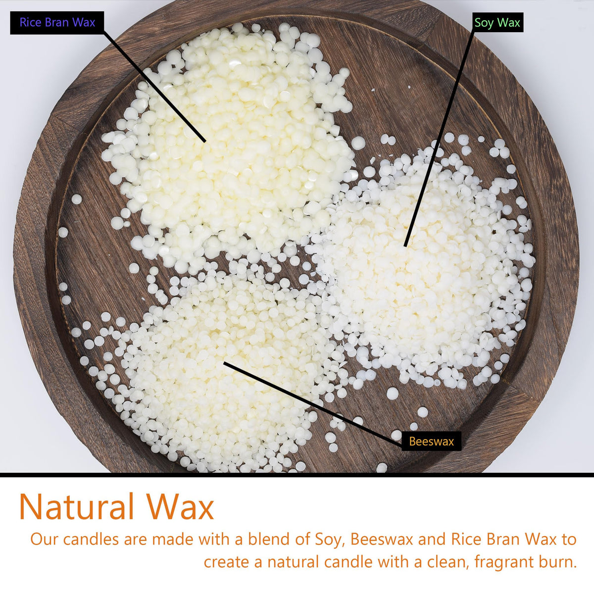 Q: What are the main ingredients used in the Let It Snow Scented Tealight Candles?A: The Let It Snow Scented Tealight Candles are made with a blend of renewable, USA grown soy wax, beeswax, and rice bran wax. They are also highly scented with a 10% plant-based fragrance and essential oils for an exceptional aroma.