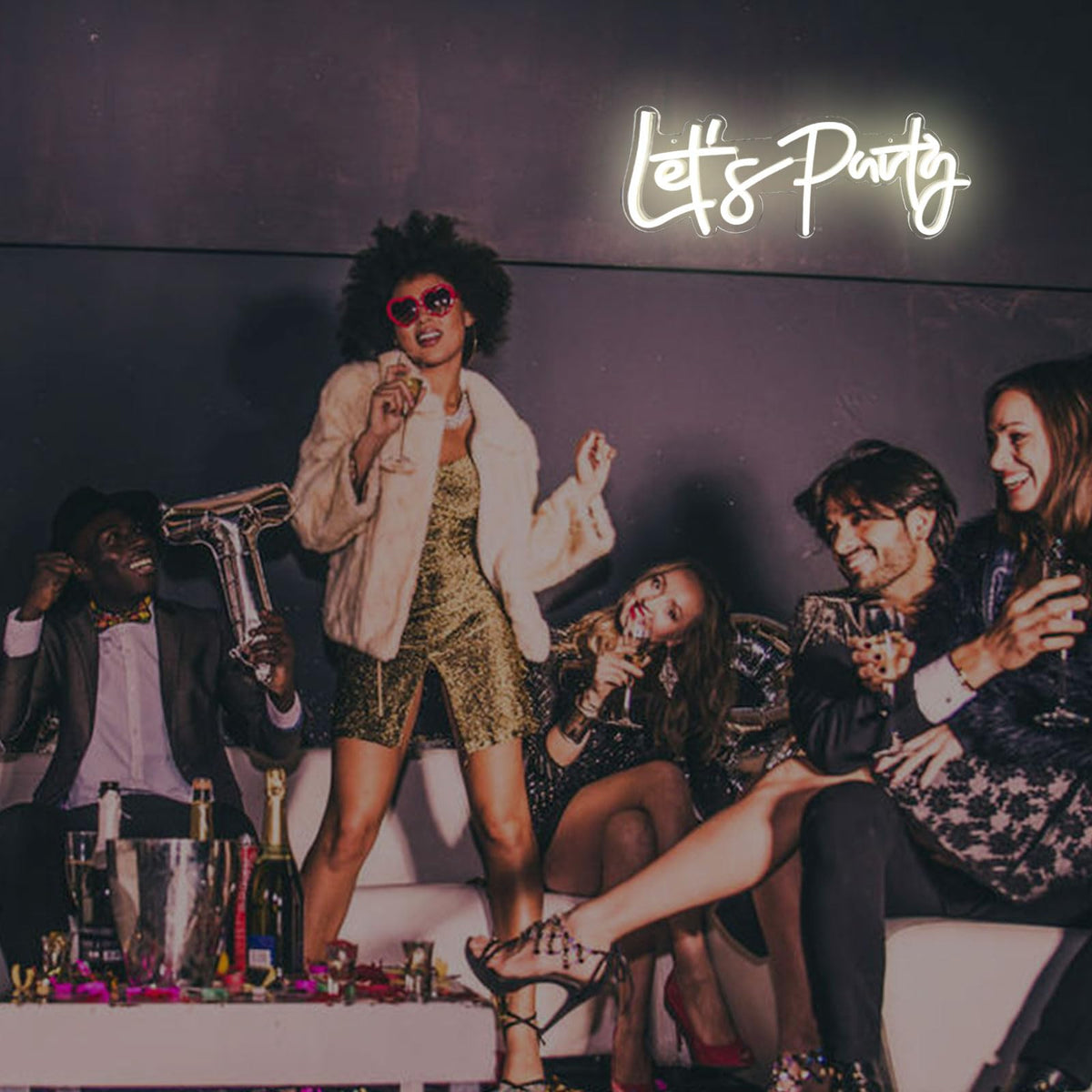 Let'S Party Neon Sign, Led Neon Lights For Bedroom Wall Decor, Art Decorative Lights For Bachelorette Party, Engagement Party, Birthday Party, Living Room, Gamer Room Decor Aesthetic (Warm White)