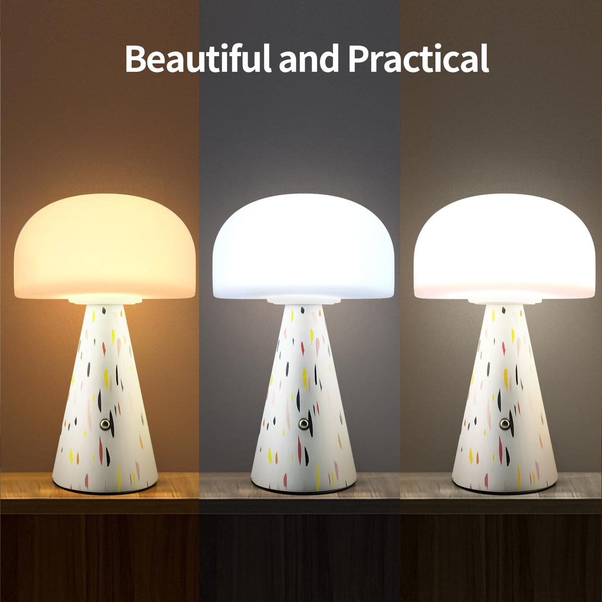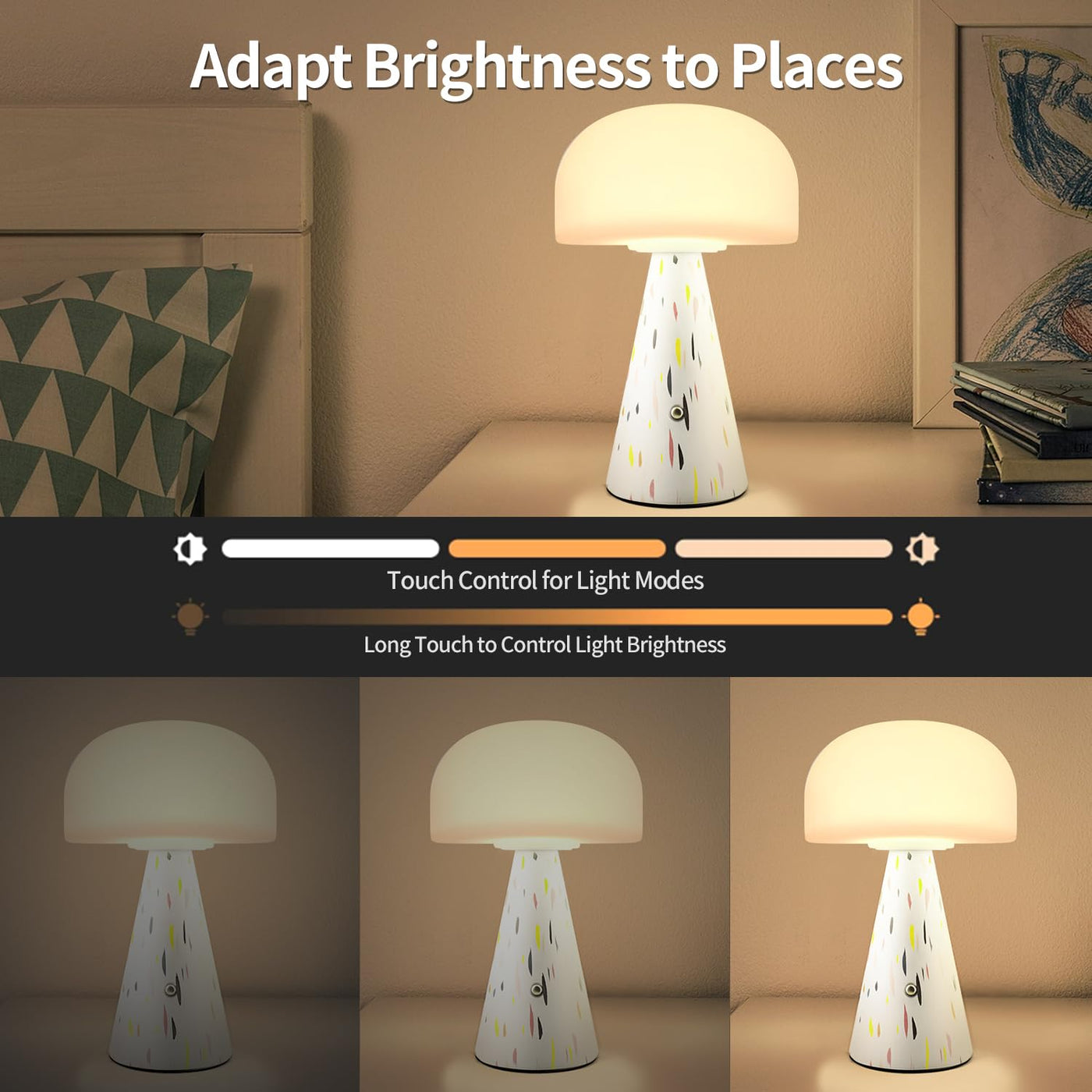 Levigo Cute Mushroom Table Lamp With Touch Switch, Natural Style Portable Cordless Led Dimmable Soft Light Lamp (Yellow)