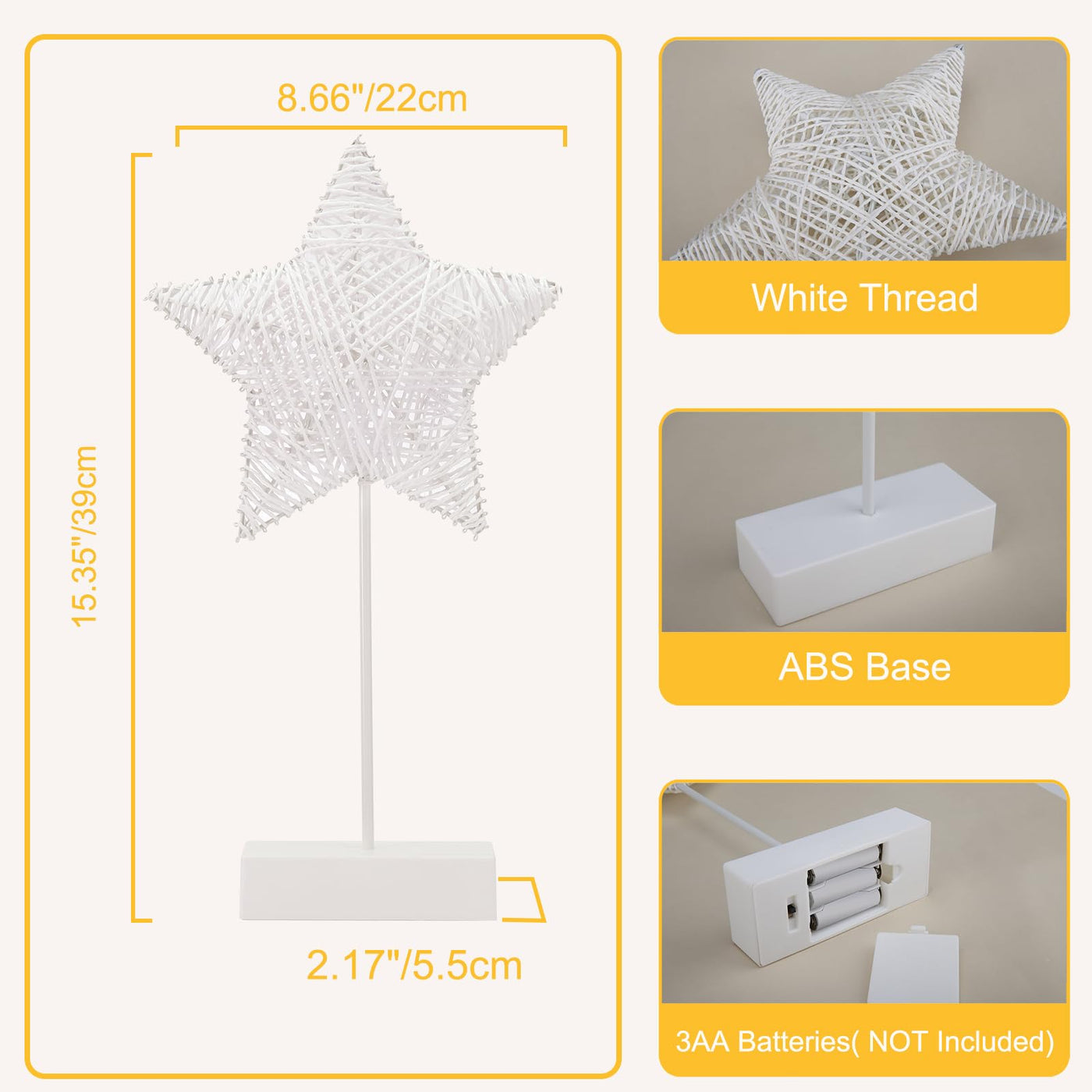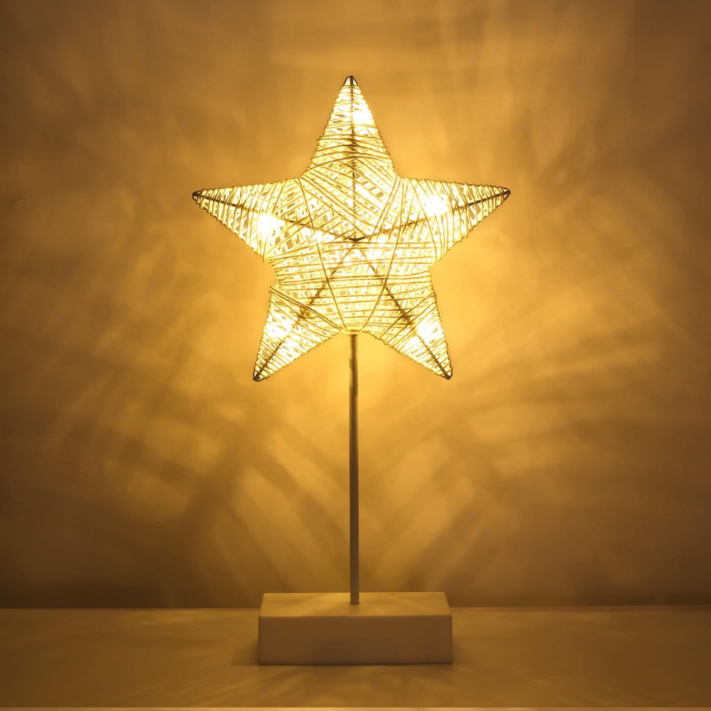 Lewondr Christmas Star Table Lamp - Warm Led, Battery Operated, White, Cordless Night Light