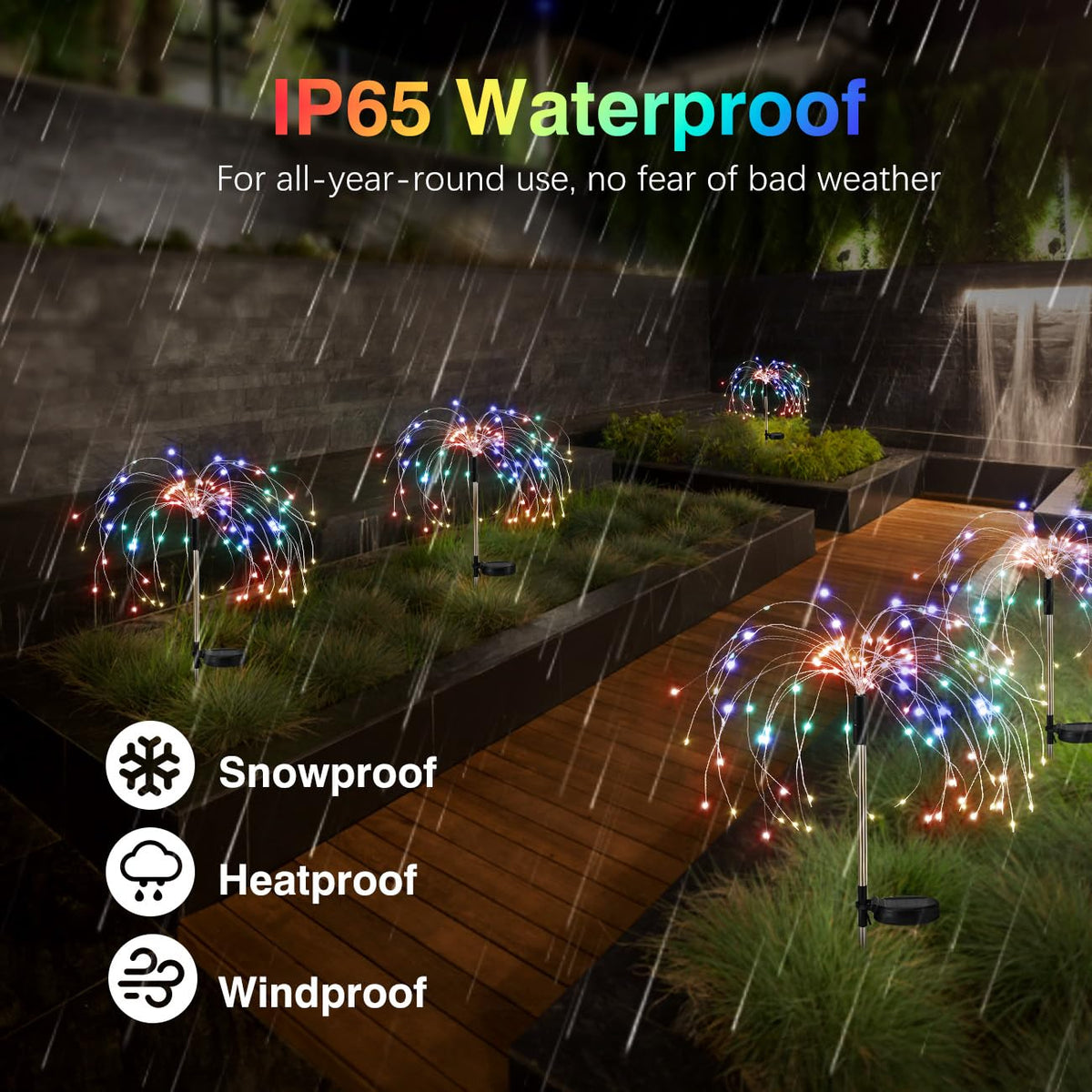 Lewondr Firework Solar Garden Lights, 120 LED Solar Firework Lights with 8 Lighting Modes, Waterproof Sparkler Starburst Solar L