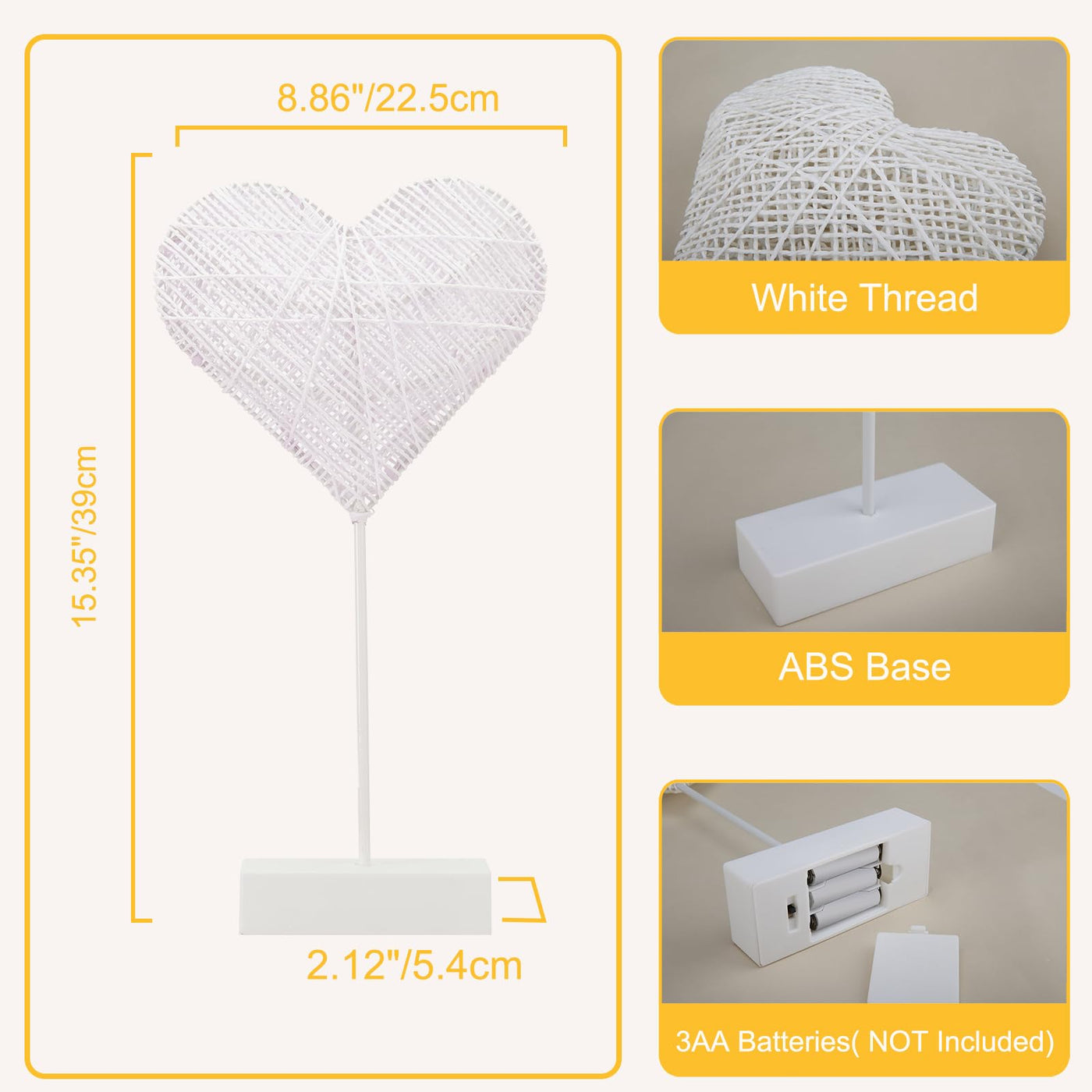 Lewondr Heart Led Table Lamp, White Winding Cotton Thread Night Light For Bedroom & Decor