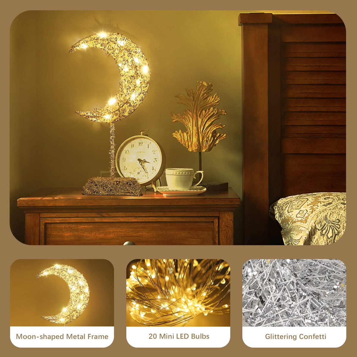 ?? Crescent Moon Design: This table lamp features a unique crescent moon shape, adding a beautiful and luxurious touch to your decor, perfect for festive occasions and creating a serene atmosphere in your bedroom.