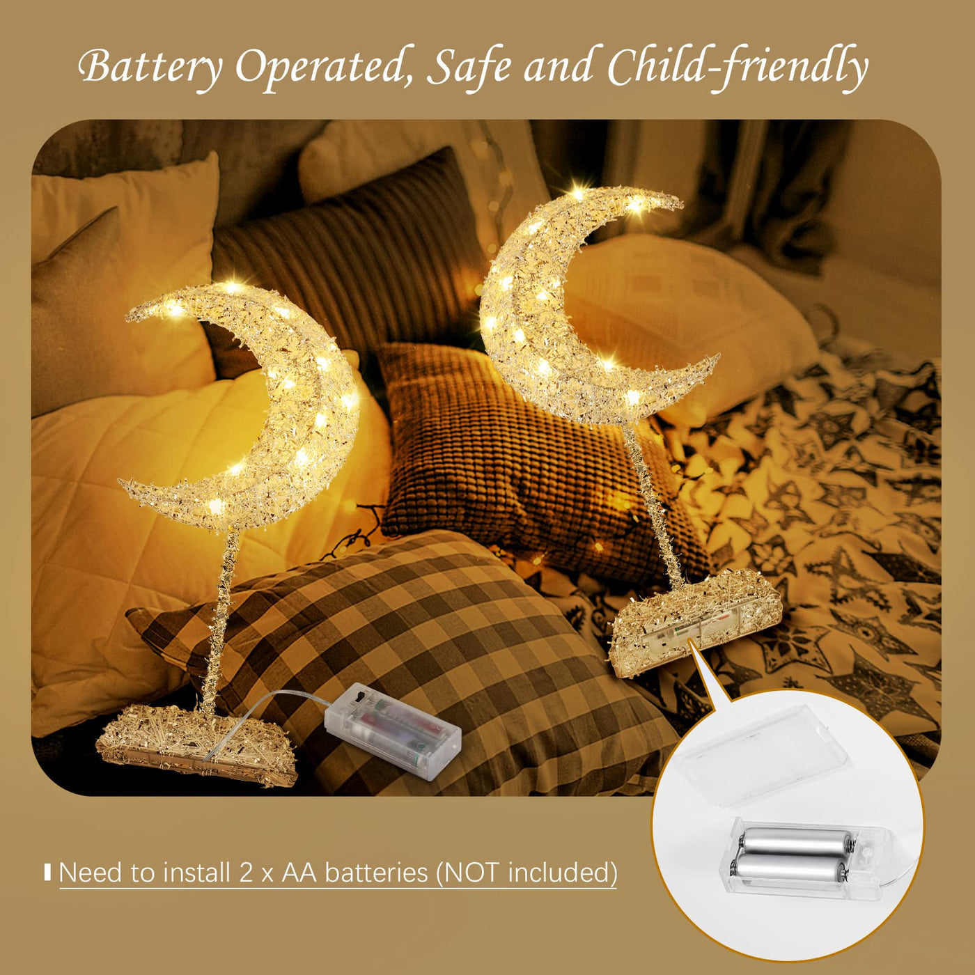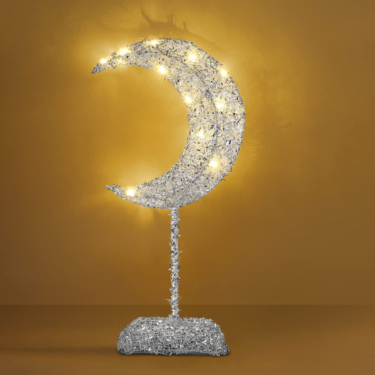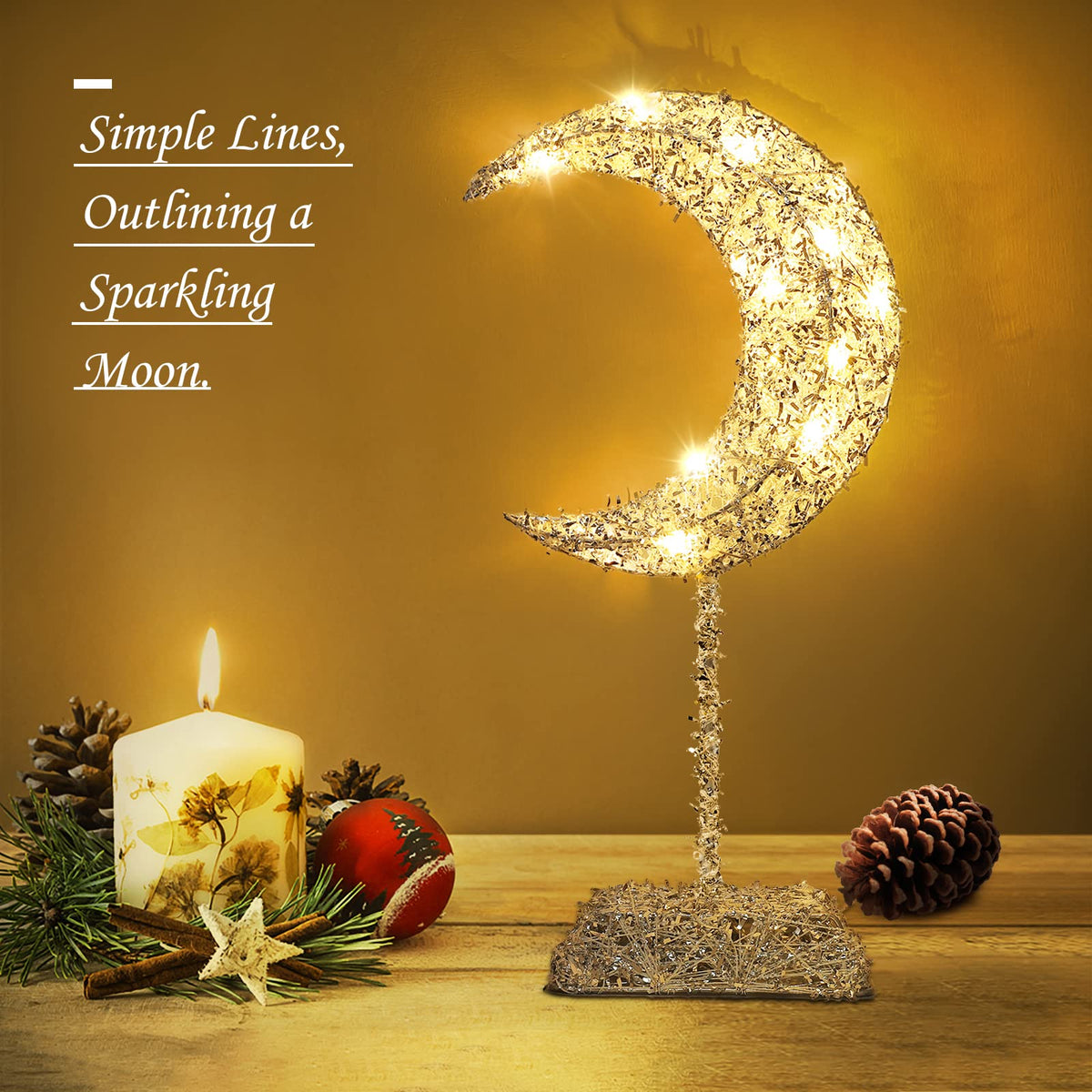 Lewondr Silver Battery Powered Moon Shape Table Lamp - Warm White Led, Iron Frame, Romantic Decor