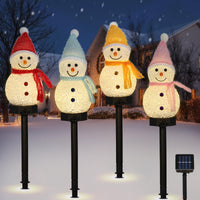 Lewondr Snowman Christmas Decorations Lights, 4Pcs Solar Lighted Snowman With Garden Stakes, Waterproof Garden Lawn Pathway With