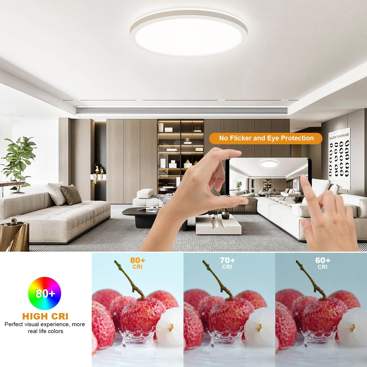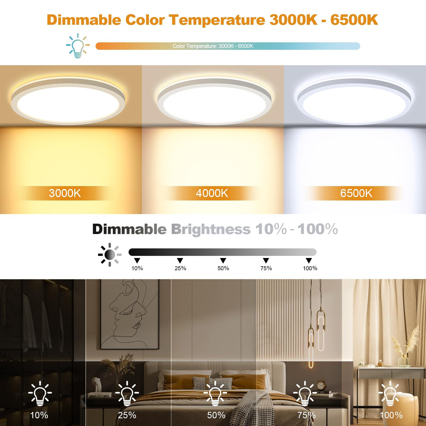 Lezoe Rgb Led Ceiling Light Dimmable With Remote Control 18W 1800Lm Color Changing Light Flush Mount Fixture 8.6 Inch 3000K-6500K 1Inch Slim Ceiling Lamp For Bedroom Kitchen Party Living Room Round