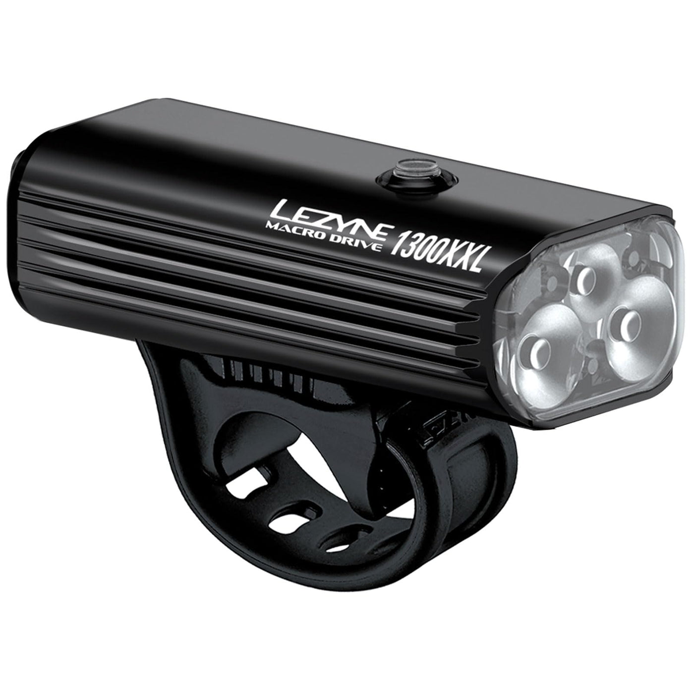 Lezyne Macro Drive 1300Xxl Bicycle Usb Rechargeable Ipx7 Waterproof 3 White Led Tri-Focus Optics Front Light W/ 4 Solid & 3 Flash Modes | Black Gloss, 1300 Lumens/Micro Usb