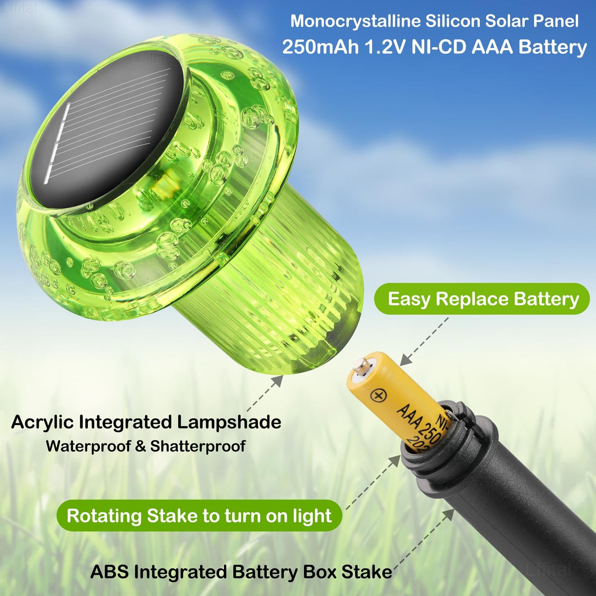 Lffital Halloween Solar Lights Outdoor 8 Pack Green Solar Pathway Lights Outdoor Mushroom Led Waterproof Lighting Stake For Outside Yard Path Garden Lawn Patio Landscape Decorations