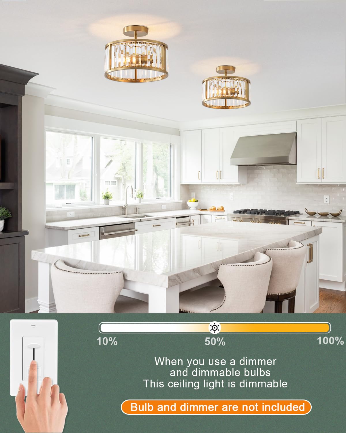 - **Dimmable Options**: Designed for adaptability, this ceiling light is compatible with dimmable E26 bulbs (not included) and can be controlled by a dimmer switch, allowing you to customize the lighting to suit your mood and needs.