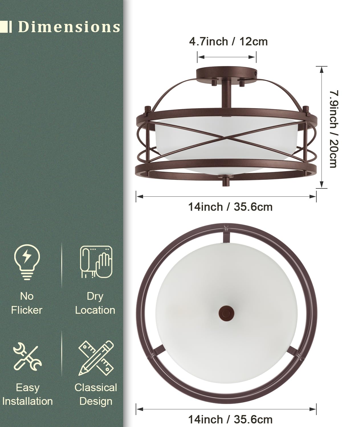 This 14-inch vintage-style ceiling light is designed to enhance your living space with its elegant and functional design. Ideal for various settings, this fixture adds a touch of sophistication to American industrial and farmhouse decor.