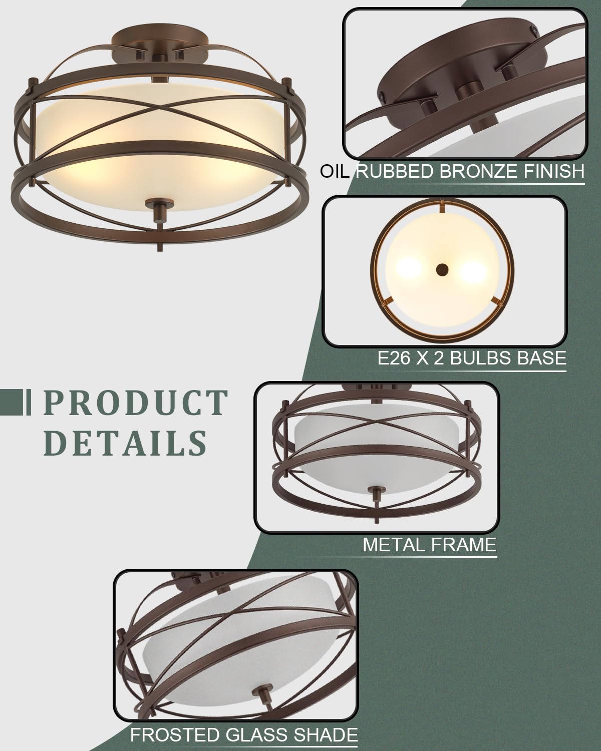 LHLYCLX Entryway Drum Light Fixture, Rustic Semi-Flush Mount, Iron, Old Bronze Finished, Model CL2005-2