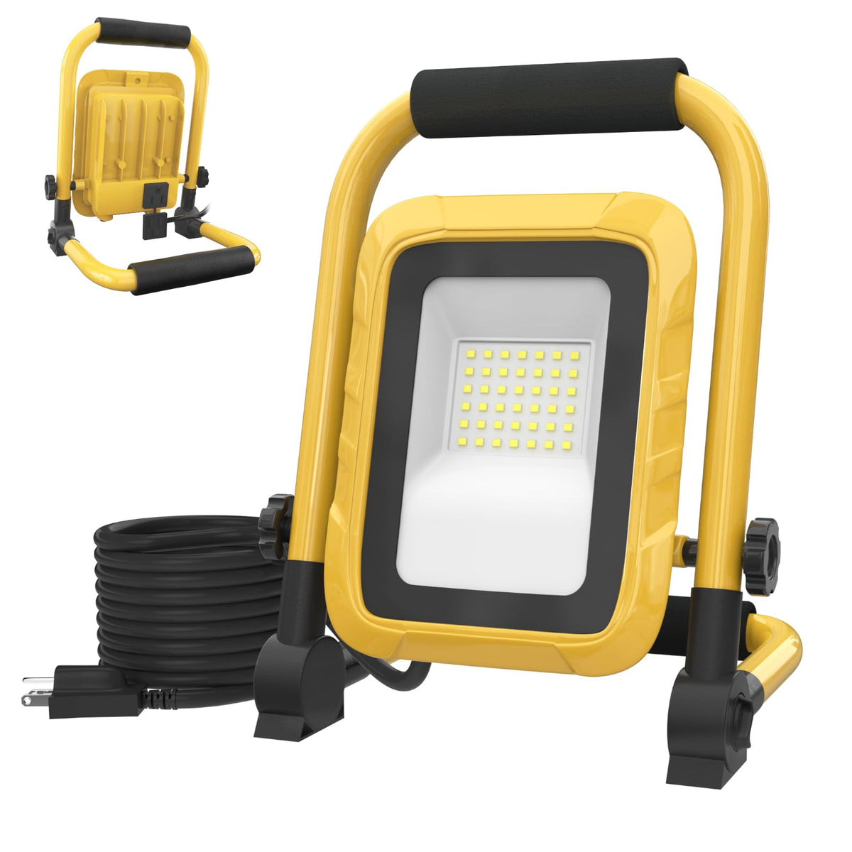 Lhotse 5000Lm Led Work Light, 30W Portable Flood Light With Socket, Outside Work Lights With Stand, Angel Adjustable Worklight For Workshop Garage,Construction Site, Ip54 Waterproof