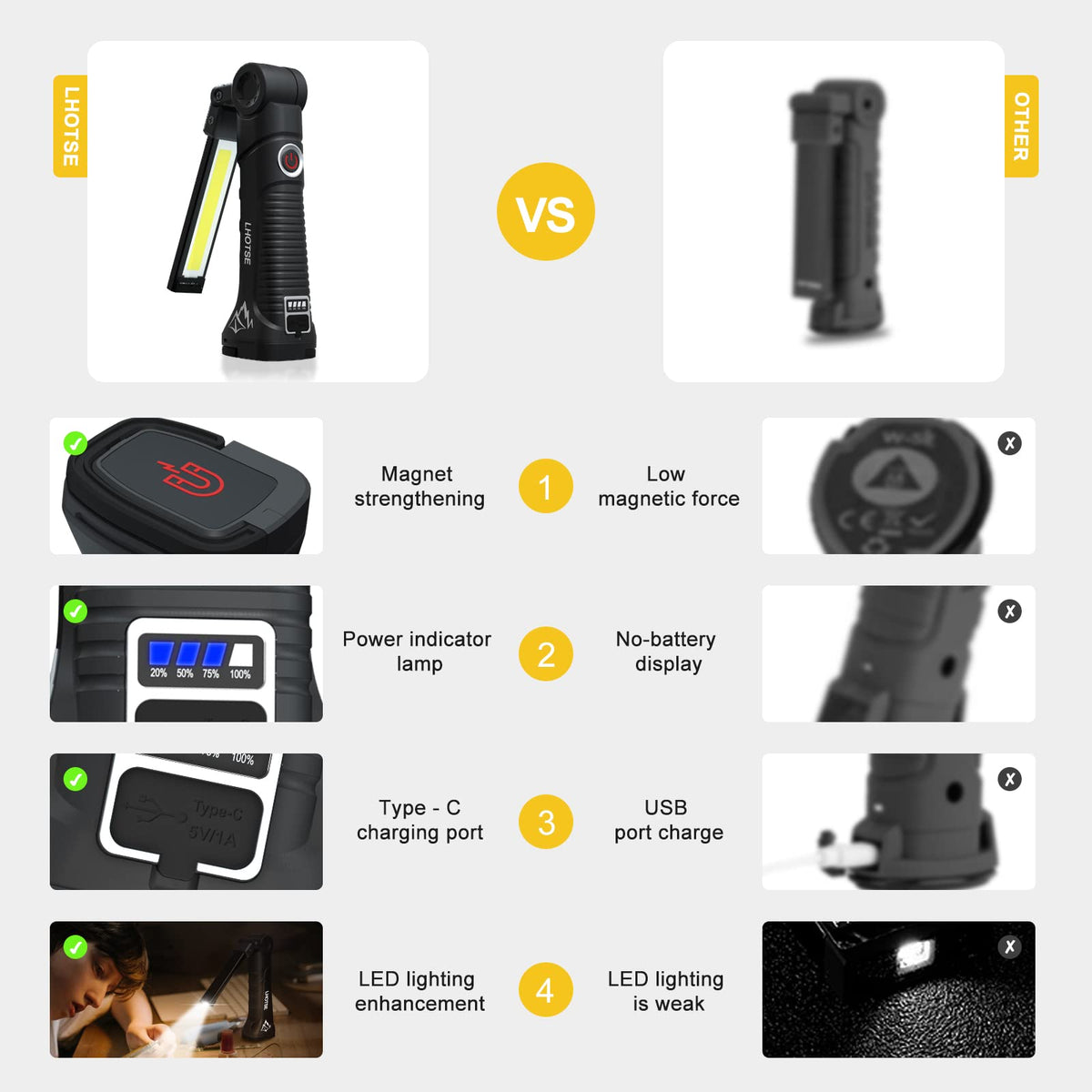 LHOTSE 4 Pack LED Work Light - Rechargeable Flashlights with Magnetic Base, 360° Rotation, 5 Modes - Ideal Father's Day Tool Gifts for Dad