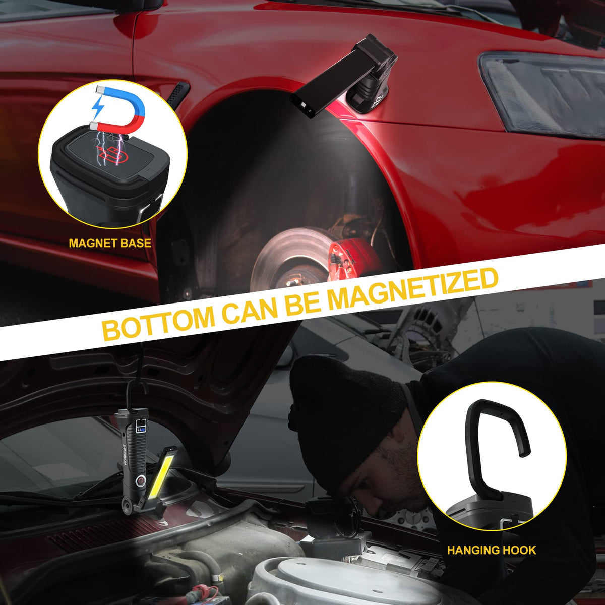 Lhotse Rechargeable Work Lights, Led Work Light With Magnetic Base And 360? Rotation Stand, 5 Modes Cob Bright Flashlights Inspe