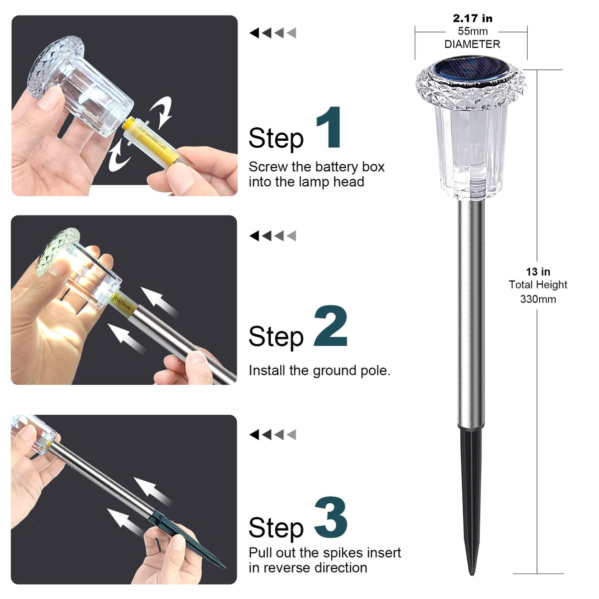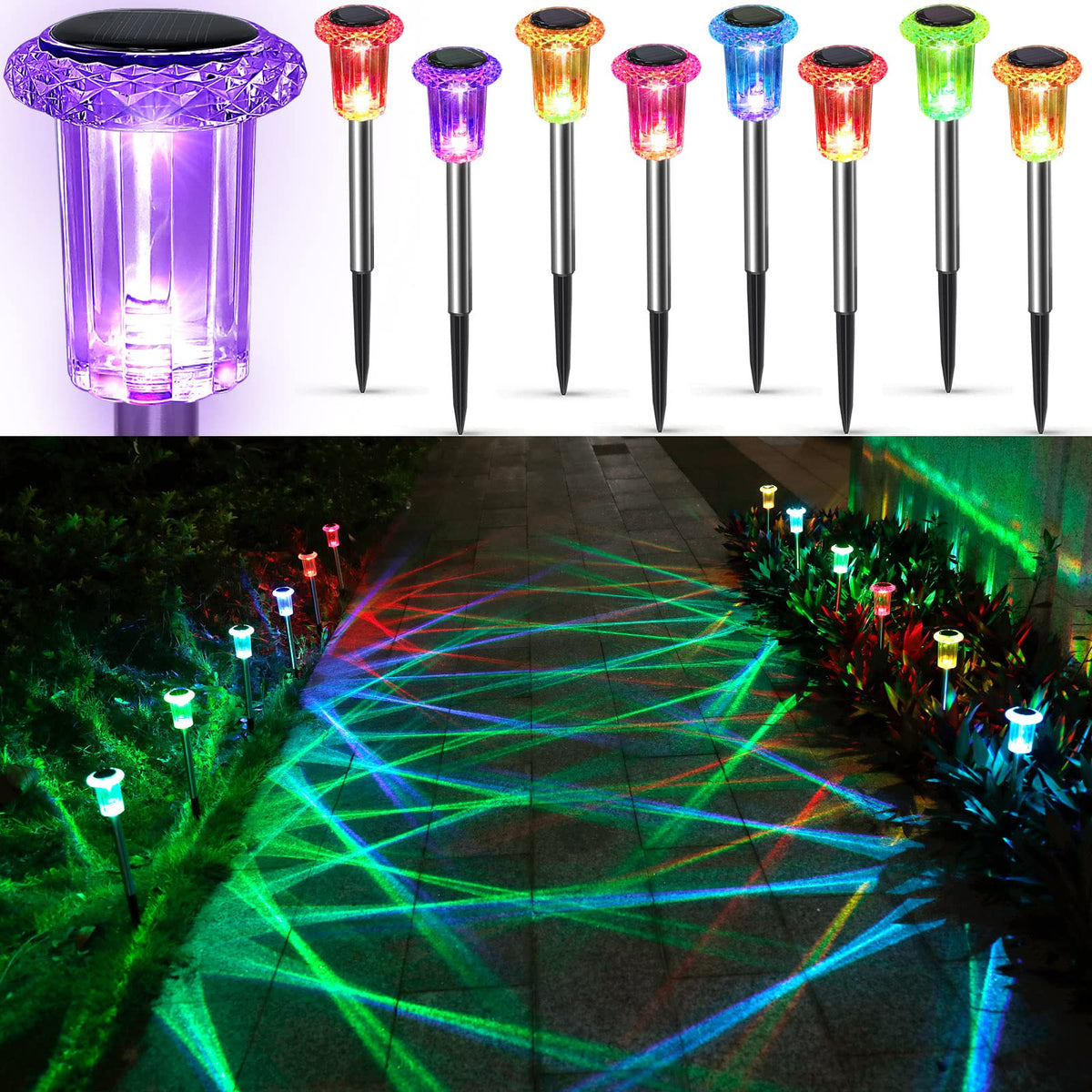 LIANGLOME Solar Lights Outdoor Pathway - 8 Pack Solar Lights Outdoor Waterproof Stainless Steel Solar Garden Lights for Landscap