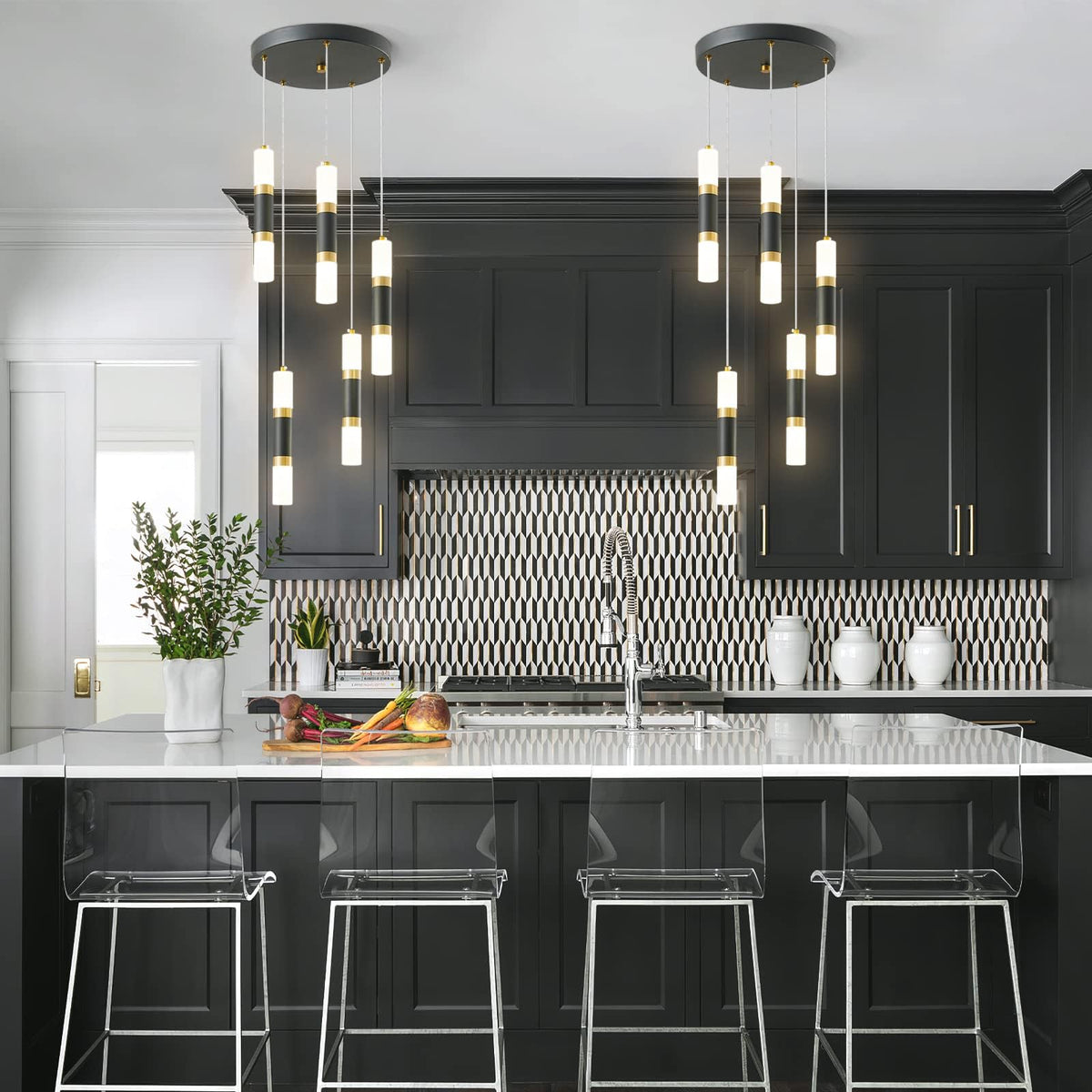 5-Light Modern Kitchen Island Dimmable Led Modern Black Gold Pendant Light, Kitchen Island Dinning Room Black Pendant Light