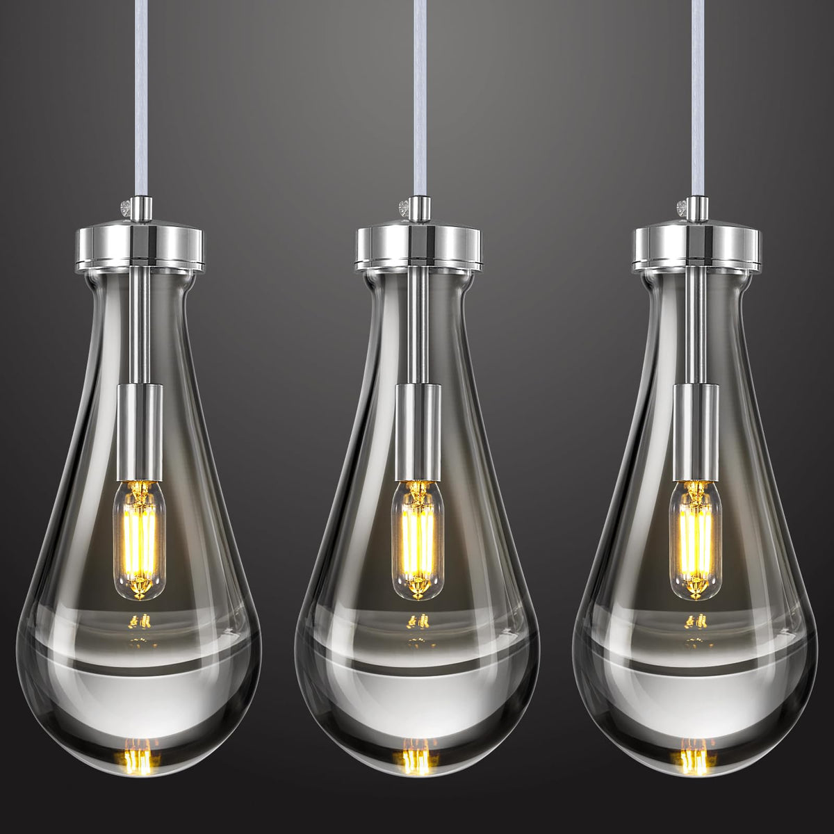 Liangmh Raindrop Pendant Lights Kitchen Island Set Of 3 Teardrop Chrome Hanging Light Fixtures Clear Solid Glass Pendant Light M