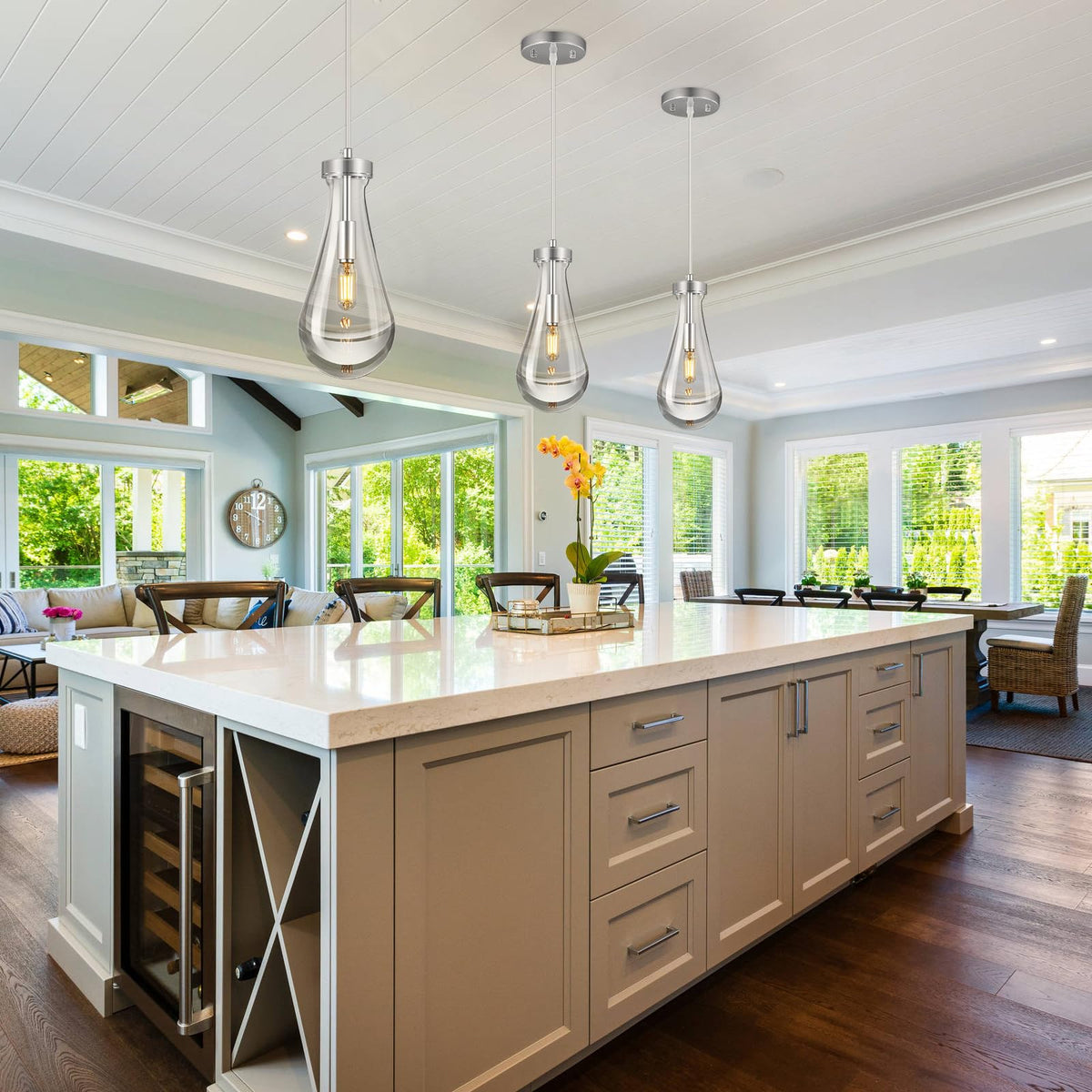 Liangmh Raindrop Pendant Lights Kitchen Island Teardrop Chrome Hanging Light Fixtures Clear Solid Glass Pendant Light Modern Cha