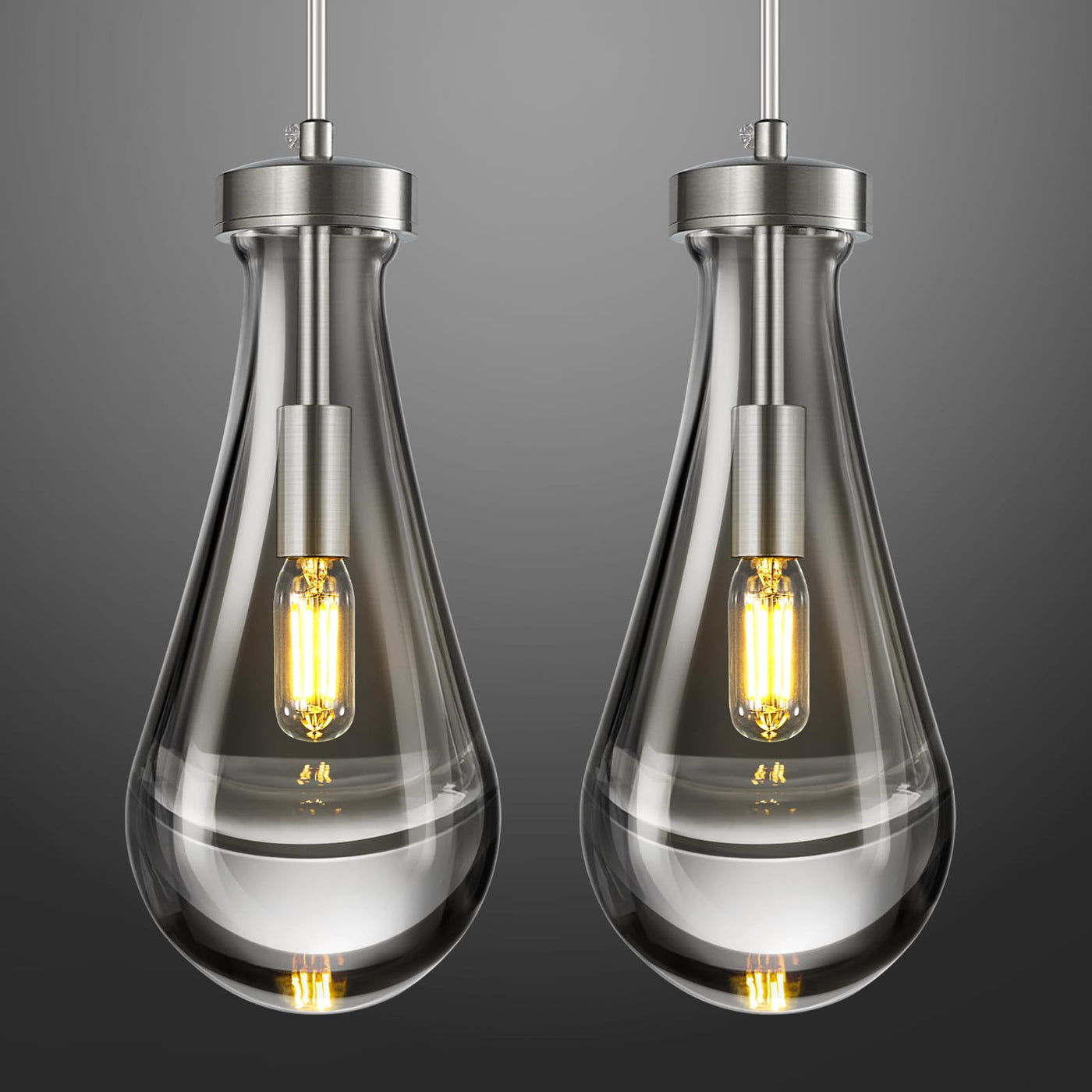 Raindrop Pendant Lights Kitchen Island Teardrop Nickel Hanging Light Fixtures Clear Solid Glass Pendant Light Modern Crystal Chandeliers For Dining Room Porch Corridor Living Room(2-Pack)