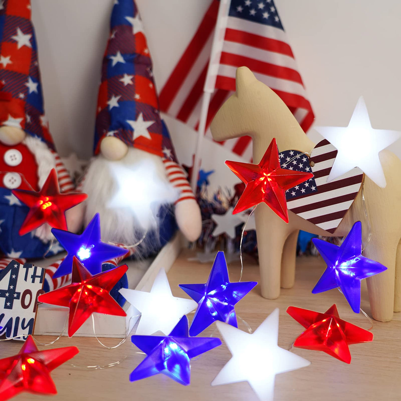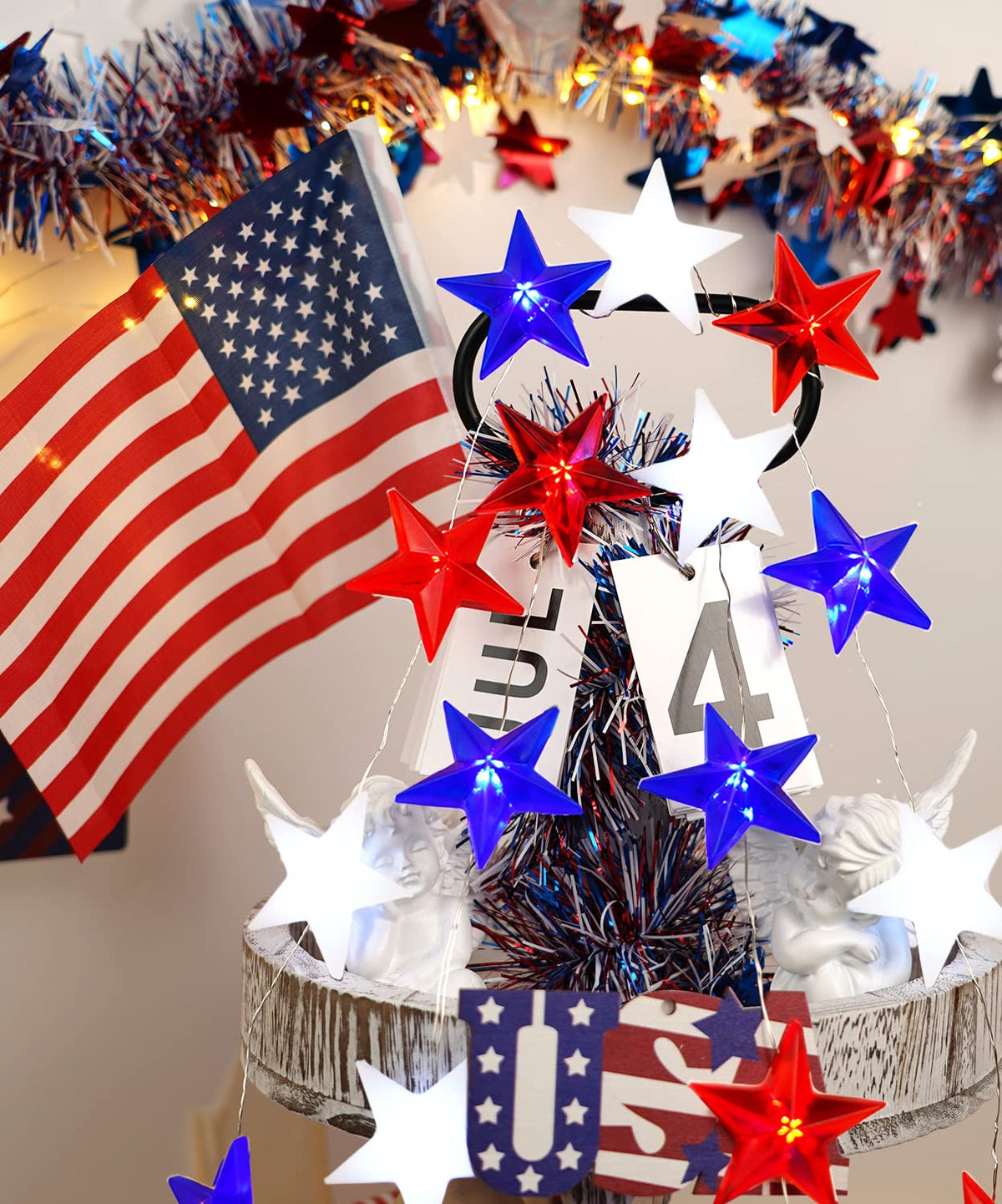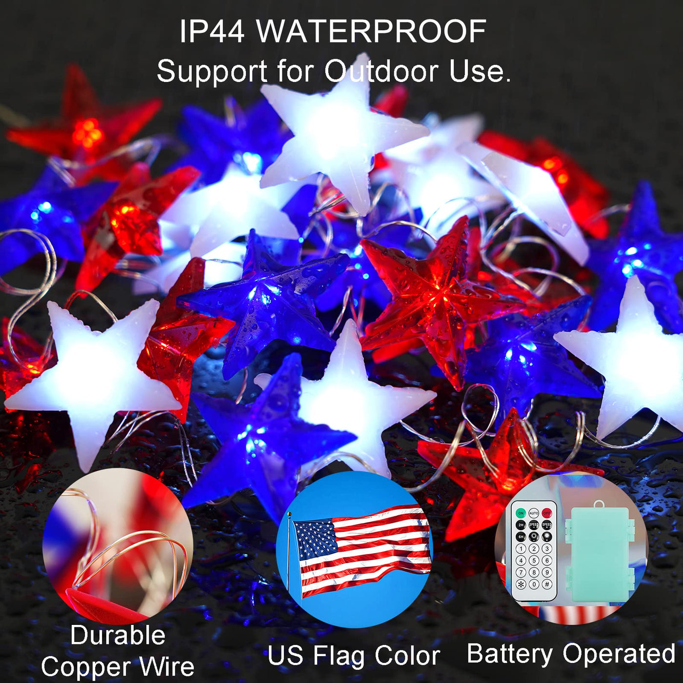 The Libreath’s Red White and Blue American Flag Stars Lights is the first choice to show your patriotic spirit. Great for Memorial Day, 4th of July Decorations, Christmas, indoor, outdoor, party and many other Celebration Occasions. It can increase the patriotic atmosphere of the party and allows you, family and friends to enjoy a happy and memorable party time.