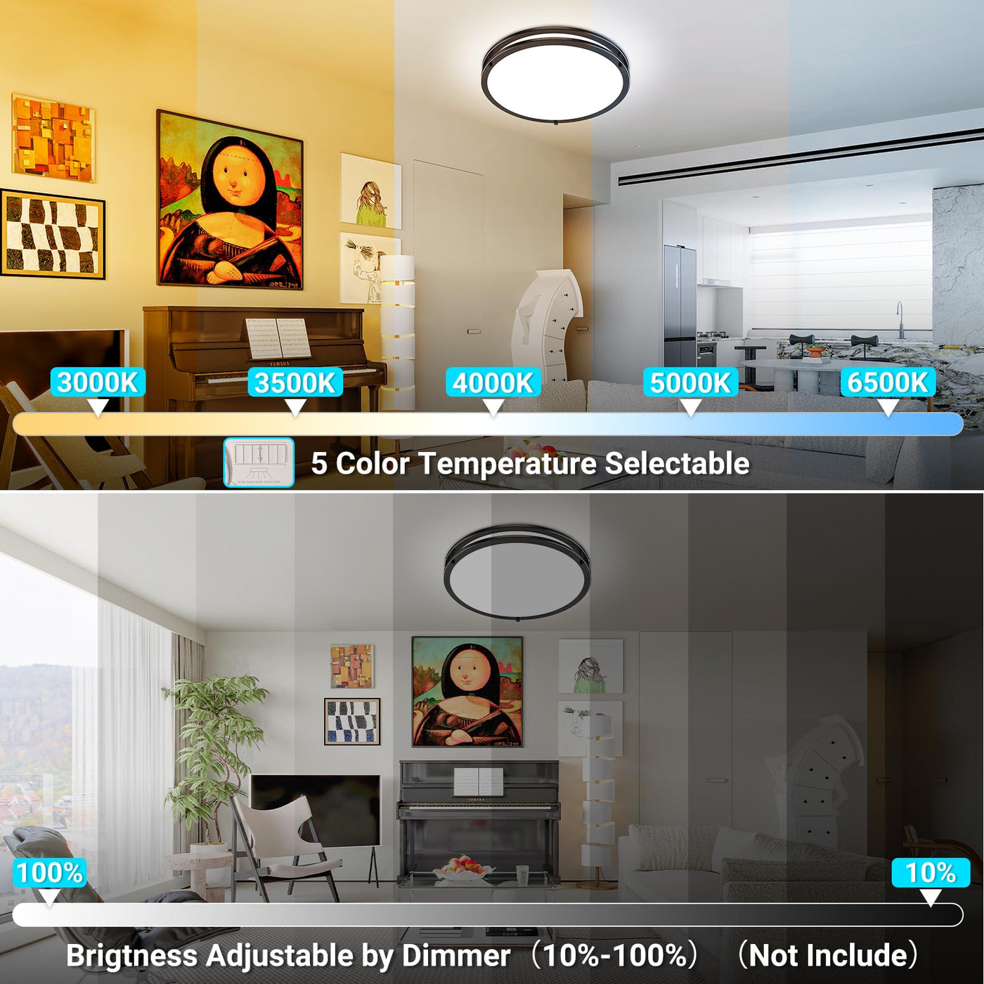 Libtit 10Inch Black Ceiling Light Modern And Elegant Design To Brighten Your Space Illuminate Your Environment With The Libtit 10Inch Black Ceiling Light Combining Contemporary Aesthetics With Functionality For A Bright And Comfortable Atmosphere. Key Features: Nightlight Functionality:The Night Light Mode (3000K 10% Brightness) Create A Cozy Sleeping Environment With Warm Yellow Nightlight And Convenient 1-Hour Timer Helping You Unwind And Fall Asleep Peacefully. 5 Adjustable Color Options: Select From Five Color Temperatures To Set The Perfect Mood:2700K Warm White 3000K Soft White 3500K Natural White 4000K Cool White 6500K Bright White. Smooth Dimming (10%-100%):Tailor The Brightness To Your Needs With Energy-Efficient Dimmable Lighting Perfect For Any Activity. Reliable Performance:Experience Flicker-Free Instant-On Illumination. This Light Is Energystar Certified Damp-Rated For Durability And Etl Listed For Safety. Enjoy Peace Of Mind With A 5-Year Warranty. Adjust Brightness Color Temperature And Night Light Settings Effortlessly To Create The Perfect Ambiance. Whether You Need Bright Illumination For Tasks Or A Soft Glow For Relaxation The Remote Control Puts Lighting Control At Your Fingertips Versatile Application: Perfect For Living Rooms Bedrooms Kitchens Basements Hallway Entryway Wardrobe And More. Waterproof Ip44 Rating Makes It Suitable For Bathrooms And Shower Rooms. Complements Various D?Cor Styles. Specifications: Color: Black Stainless Steel Stain Brushed Material: Pc Plastic Iron Voltage: 120V Power: 18W Diameter: 25Cm / 10Inches Thickness: 5Cm / 1.97Inches Brightness: 1800 Lumens Working Temperature: -20C To 60C Style: Modern Minimalist Contemporary Package Includes: 1X Led Flush Mount Ceiling Light User Manual Mounting Hardware
