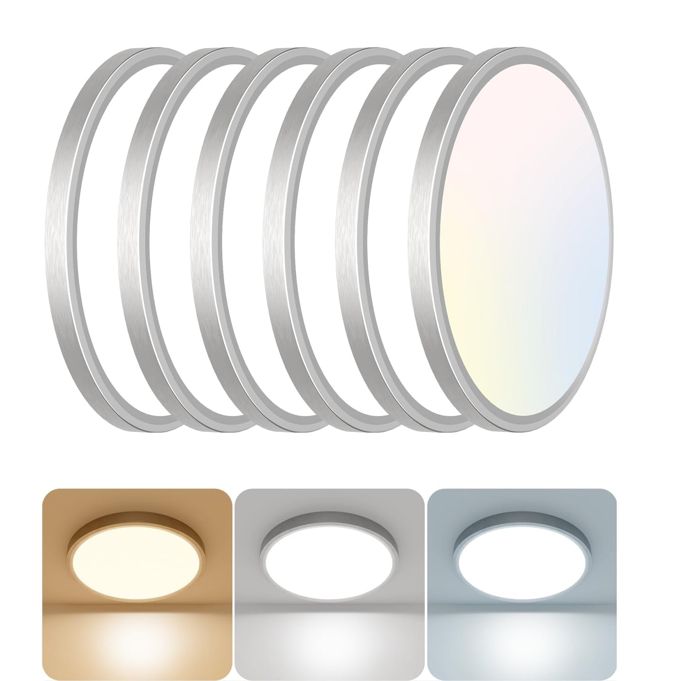libtit 12 inch Flush Mount LED Ceiling Light, 28W 3200lm, Adjustable 3000K/4000K/6500K, Brushed Nickel, 6 Pack,