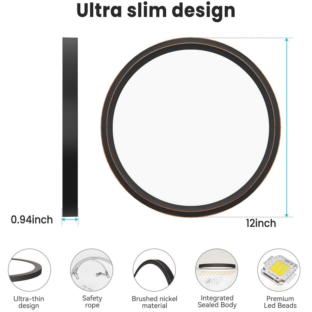 Libtit 12 Inch Flush Mount Led Ceiling Light Fixture, 3000K 4000K 6500K Adjustable, 28W 3200Lm Oil Rubbed Bronze Round Lighting