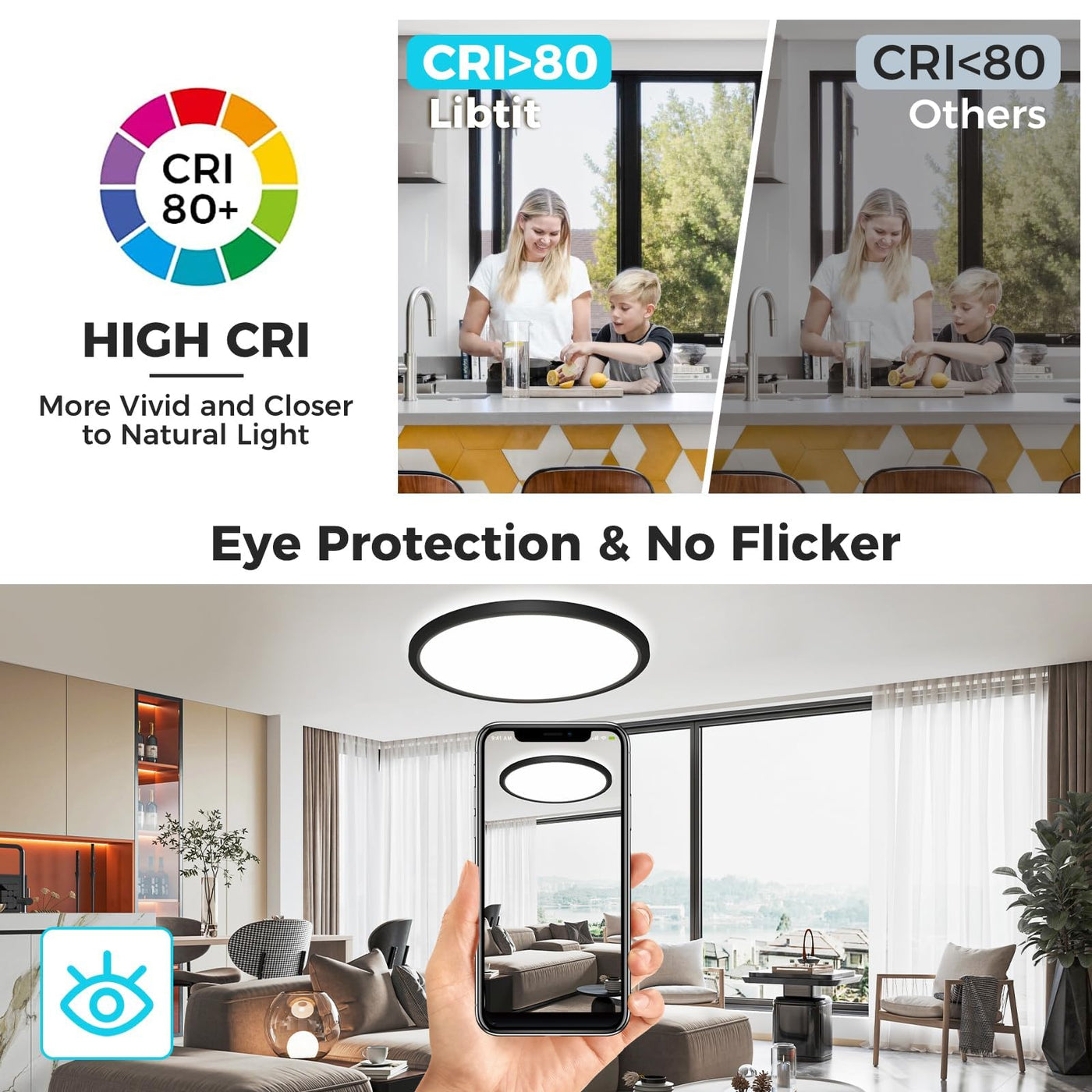 Q: How energy-efficient is the libtit 13 Inch LED ceiling light?A: This LED ceiling light is highly energy-efficient, using only 28W of power while producing an impressive 3200 lumens of brightness. It can save up to 90% on energy costs compared to traditional lighting options.
