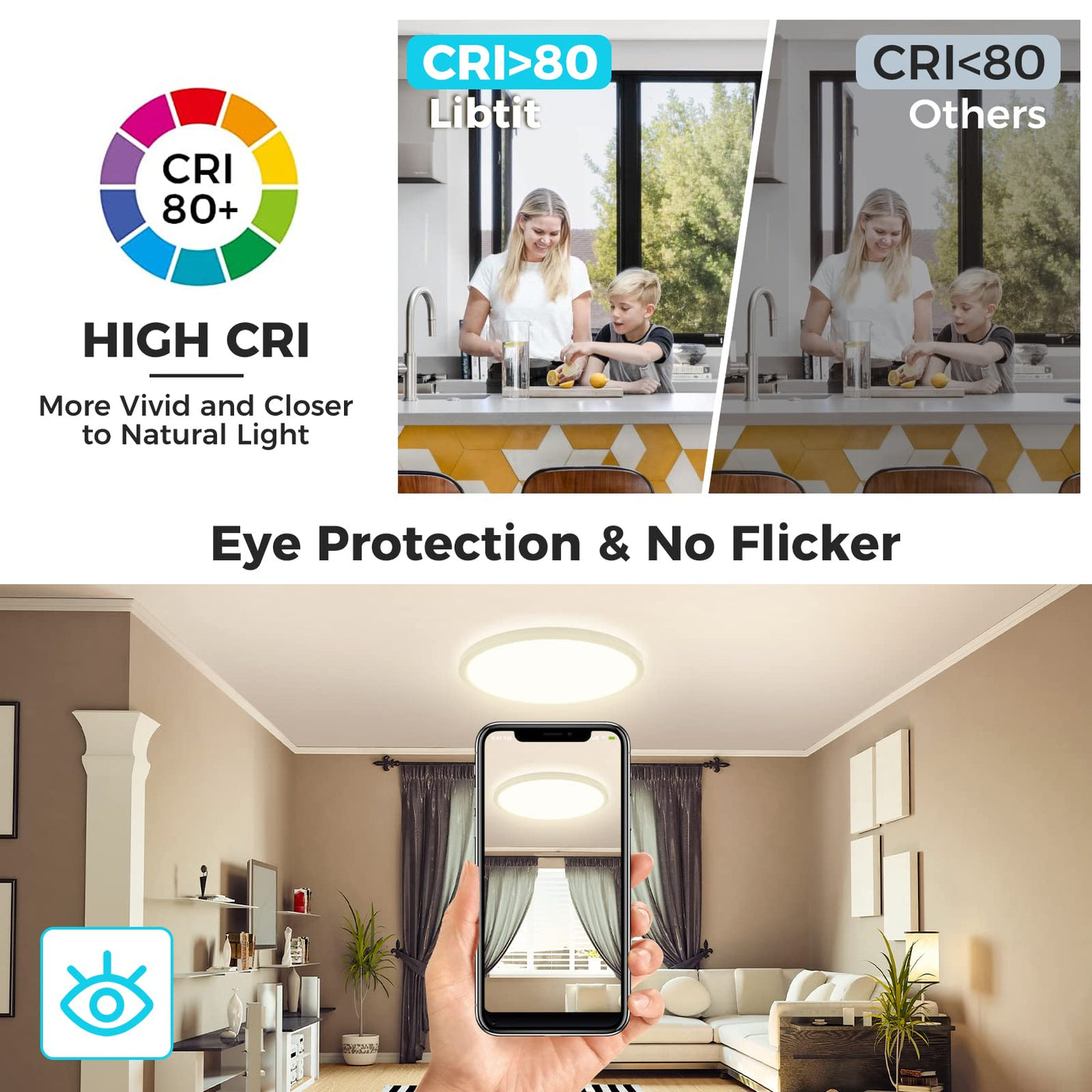 Q: How is the installation process for this ceiling light?A: The installation of the libtit LED ceiling light is user-friendly and can be completed in three quick steps. It is designed for flush or surface mounting on most junction boxes, making it easy to install in any ceiling area.