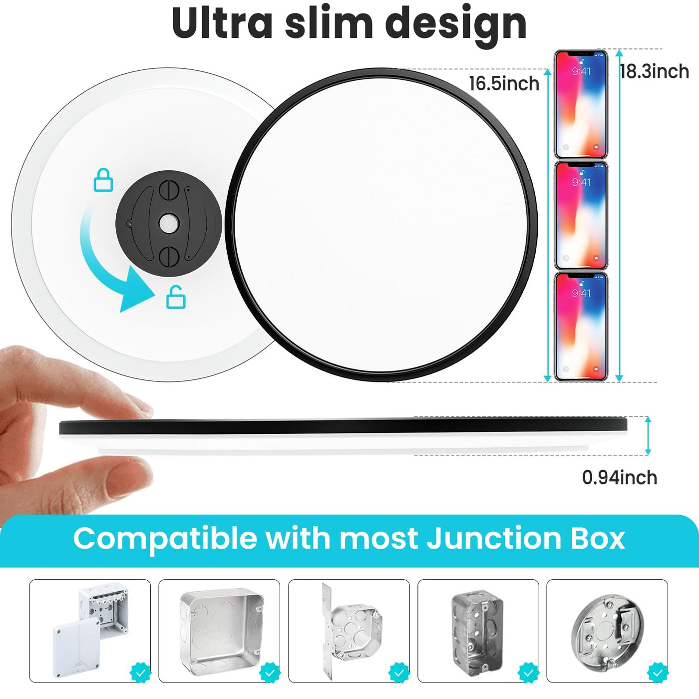 Q: What is the brightness level of the libtit 16.5 Inch Black Flush Mount Ceiling Light?A: The libtit ceiling light emits over 4200 lumens while consuming just 36W of power, making it an energy-efficient choice that provides bright illumination equivalent to a 360W incandescent light.