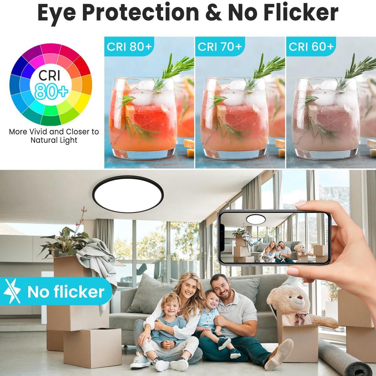 Libtit 16.5 Inch Large Black Flush Mount Ceiling Light, 4200Lm 36W Low Profile Led Ceiling Lights, Warm White/Daylight White/Coo