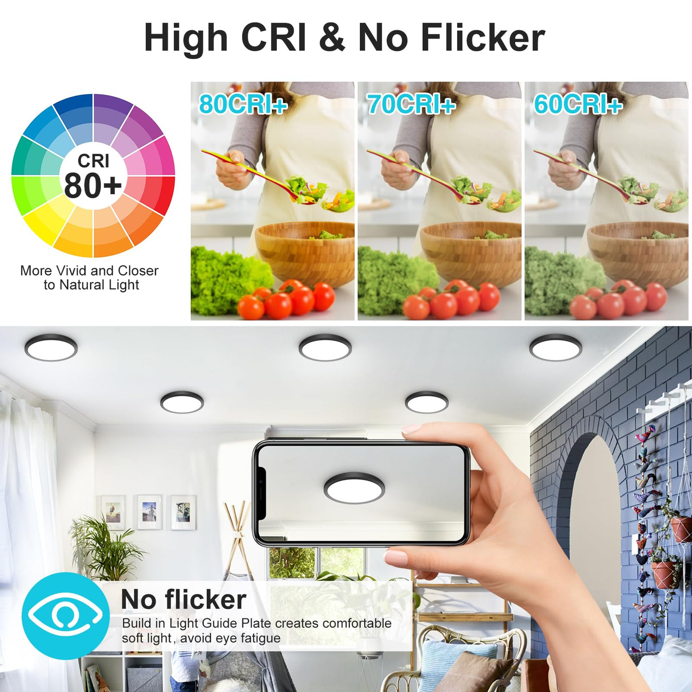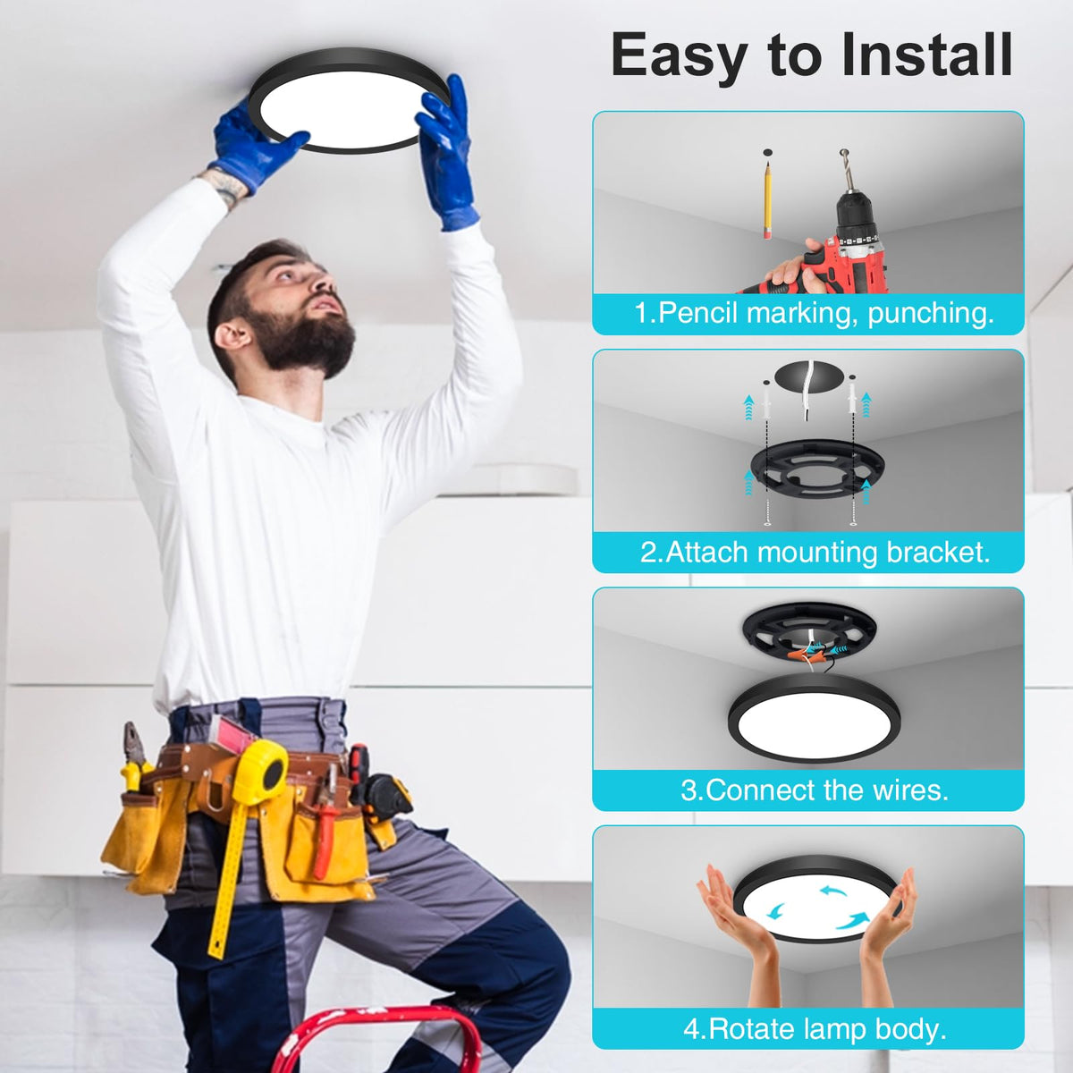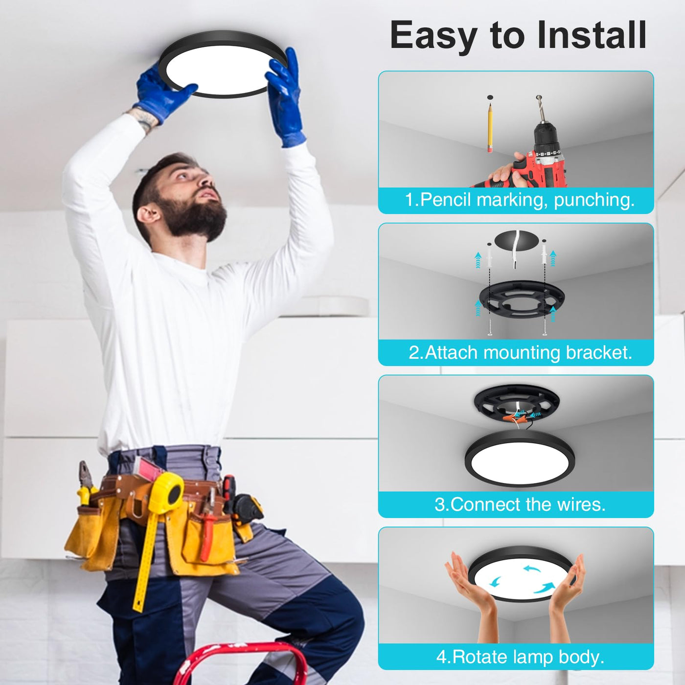 Q: How energy-efficient is the libtit Black Flush Mount Ceiling Light?A: This LED ceiling light features a brightness of 1500 lumens while consuming only 16 watts of power, resulting in a 90% energy saving compared to traditional lighting, which can help reduce your electricity bills.