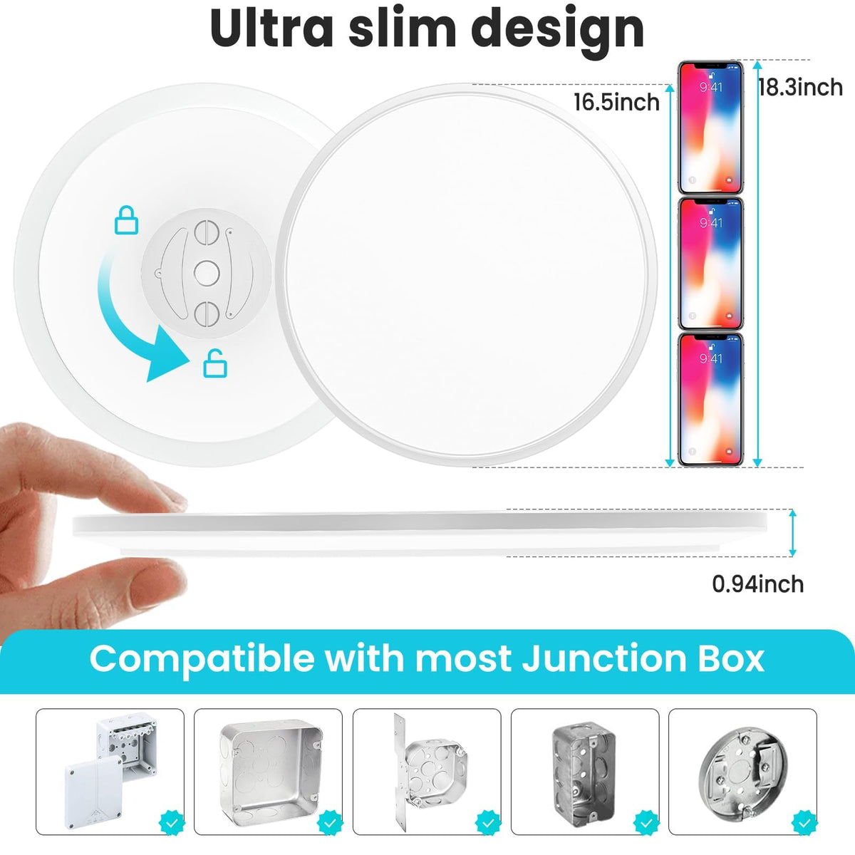The Libtit 16.5 Inch Low-Profile Ceiling Light Flush Mount Has A Slim And Modern Design, And Comes With All Necessary Installation Hardware. Its Bright Led Lights Can Evenly Light Up An 10~30 ? Area. With 3 Color Temperature Options And Simple Wiring, Installation Is Easy. 3000K Is Warm And Cozy, Ideal For Living Rooms And Bedrooms. 4500K Is Neutral And Energizing, Great For Kitchens, Bathrooms, And Tasks Like Cooking And Cleaning. 6000K Is Cool And Bright, Perfect For Workspaces, Garages, And Tasks Like Reading And Studying Specifications Of Libtit Led Ceiling Light: 90% Less Energy Consuption Long Lifespan Of 25,000 Hours 3200 Lumens Brightness With 36W Power( Equivalent To 360W Incandescent Light) Selectable Color Temperature Of 3000K/4500K/6000K Moisture-Resistant And Dust-Proof Round Shape With A Size Of 15.8*0.98 Incheswhat You Will Get: 1 Ceiling Lights 1 Product Manual 1 Sets Install Accessories Warm Tips: 1. Check The Specifications Before Buying To Ensure The Led Ceiling Light Is Suitable For You. 2. Turn Off The Power Before Installing. 3. Read The Instructions Carefully And Twist The Ceiling Lamp Securely To Ensure Proper Use.