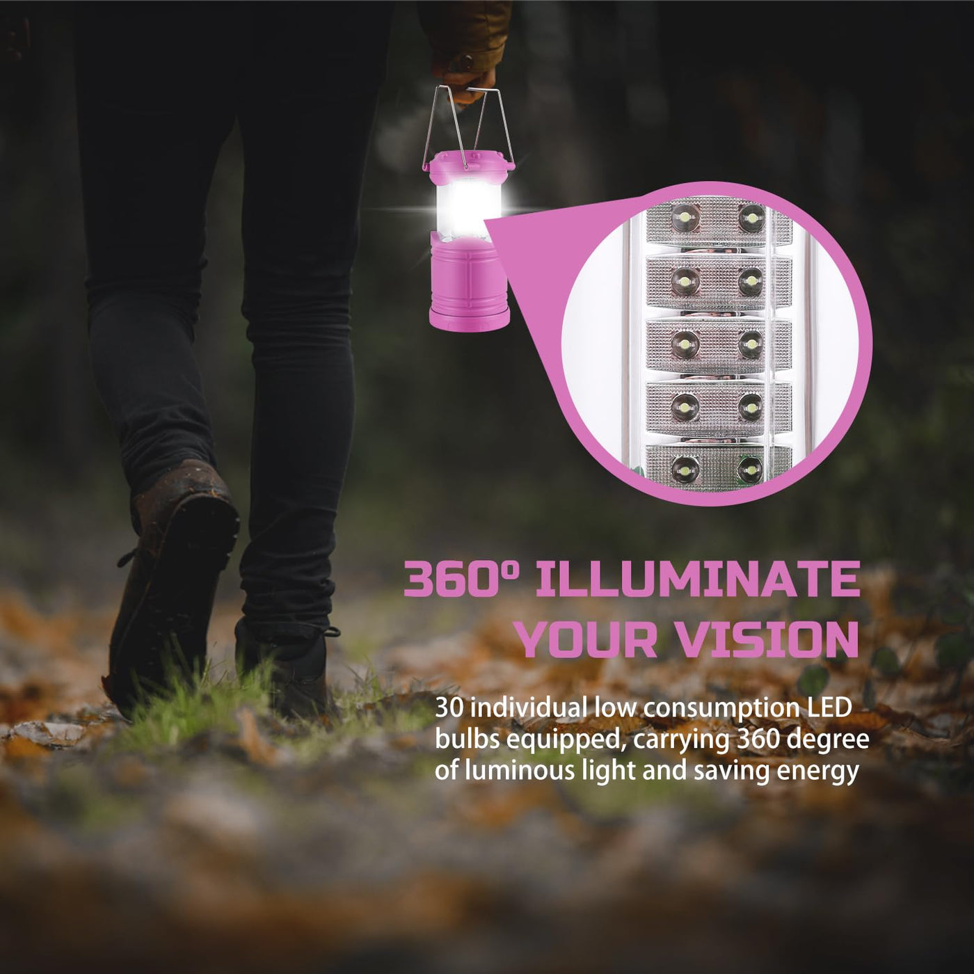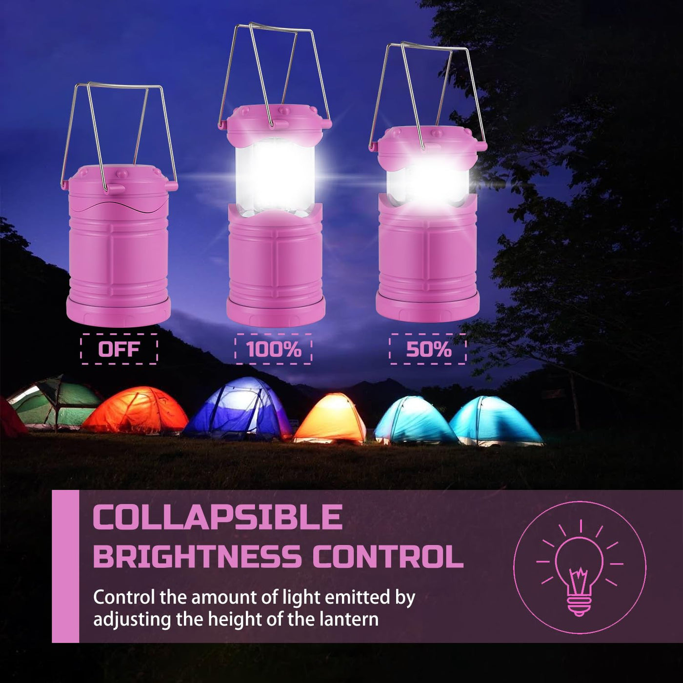 Light up your adventures with the Lichamp 4 Pack Pink LED Camping Lanterns, where practicality meets elegance!