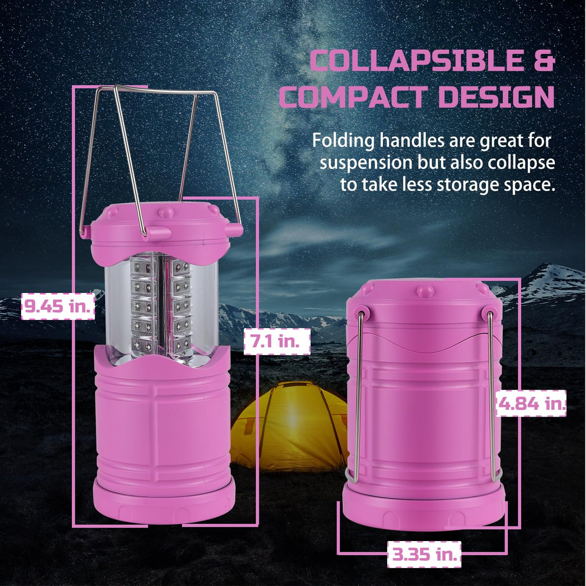 Lichamp Pink Led Camping Lanterns - 4 Pack, Super Bright, Portable, Battery Powered Emergency Lights