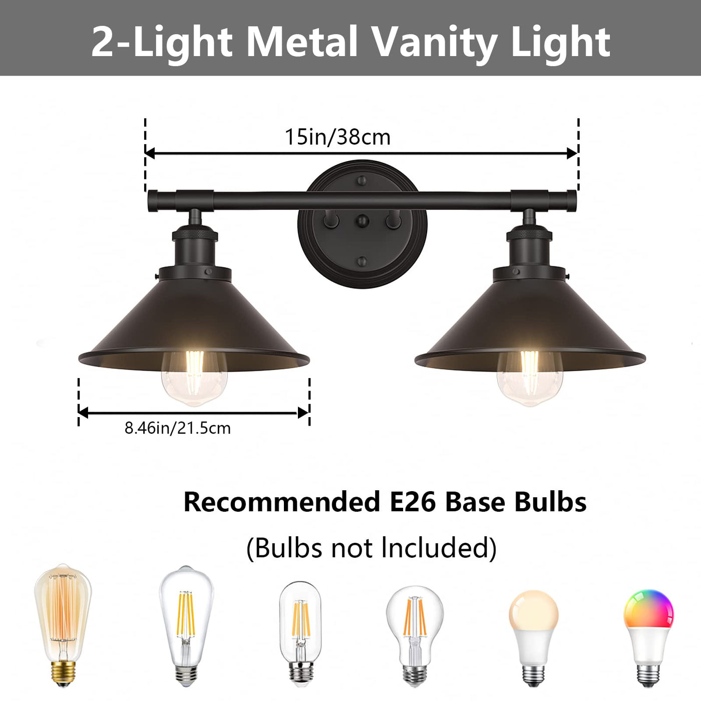Licperron Black 2-Light Vanity Wall Sconce Lighting, Farmhouse Bathroom Wall Light Fixtures Over Mirror, Industrial Rustic Indoo
