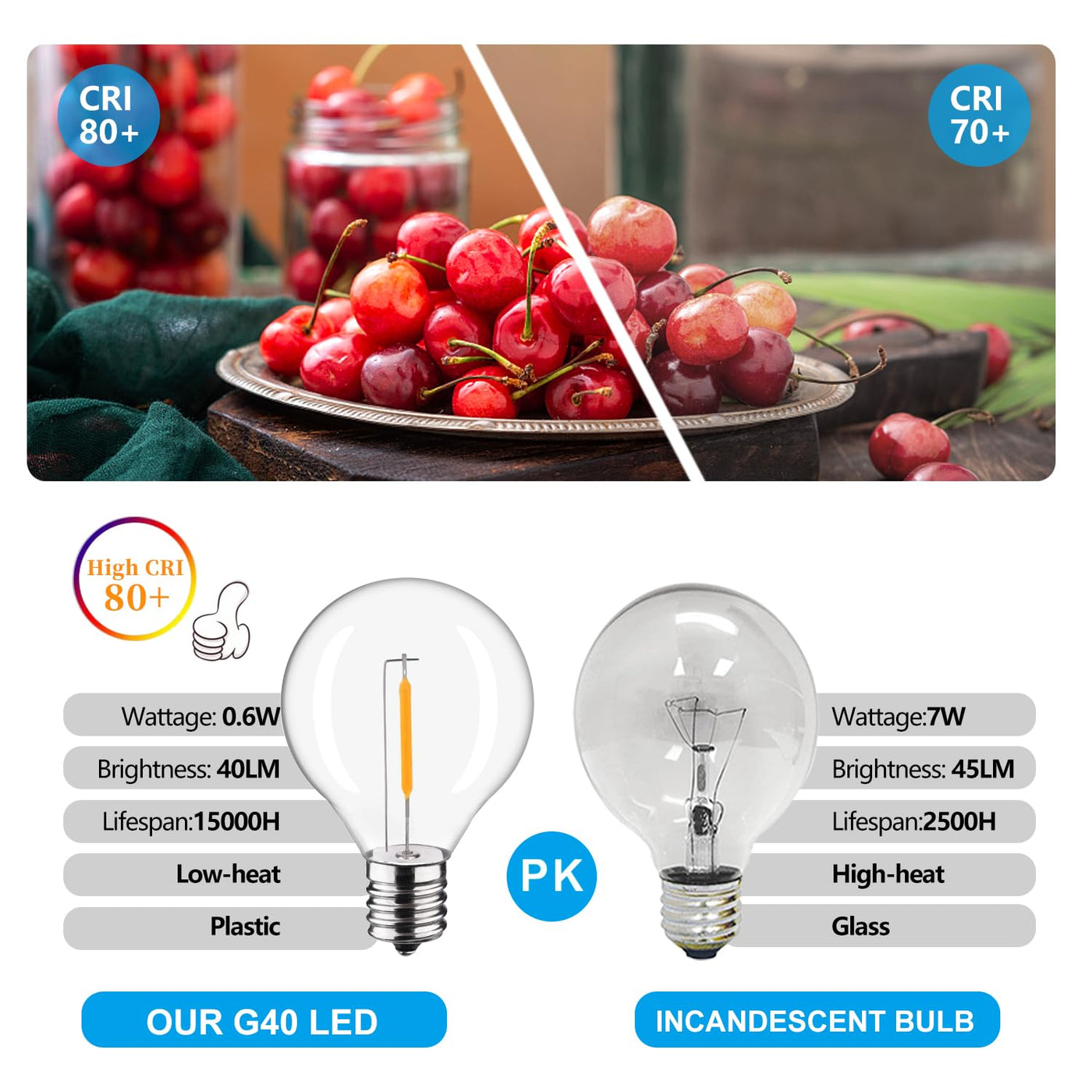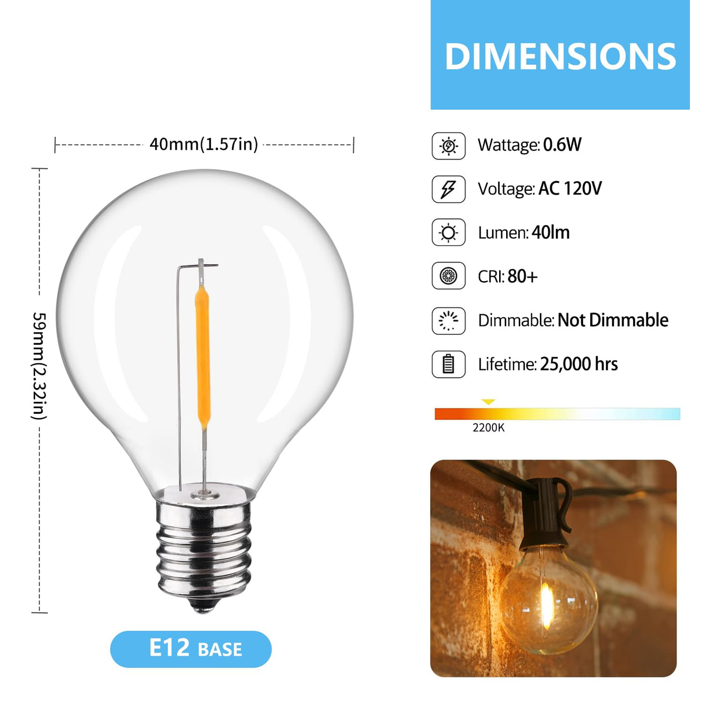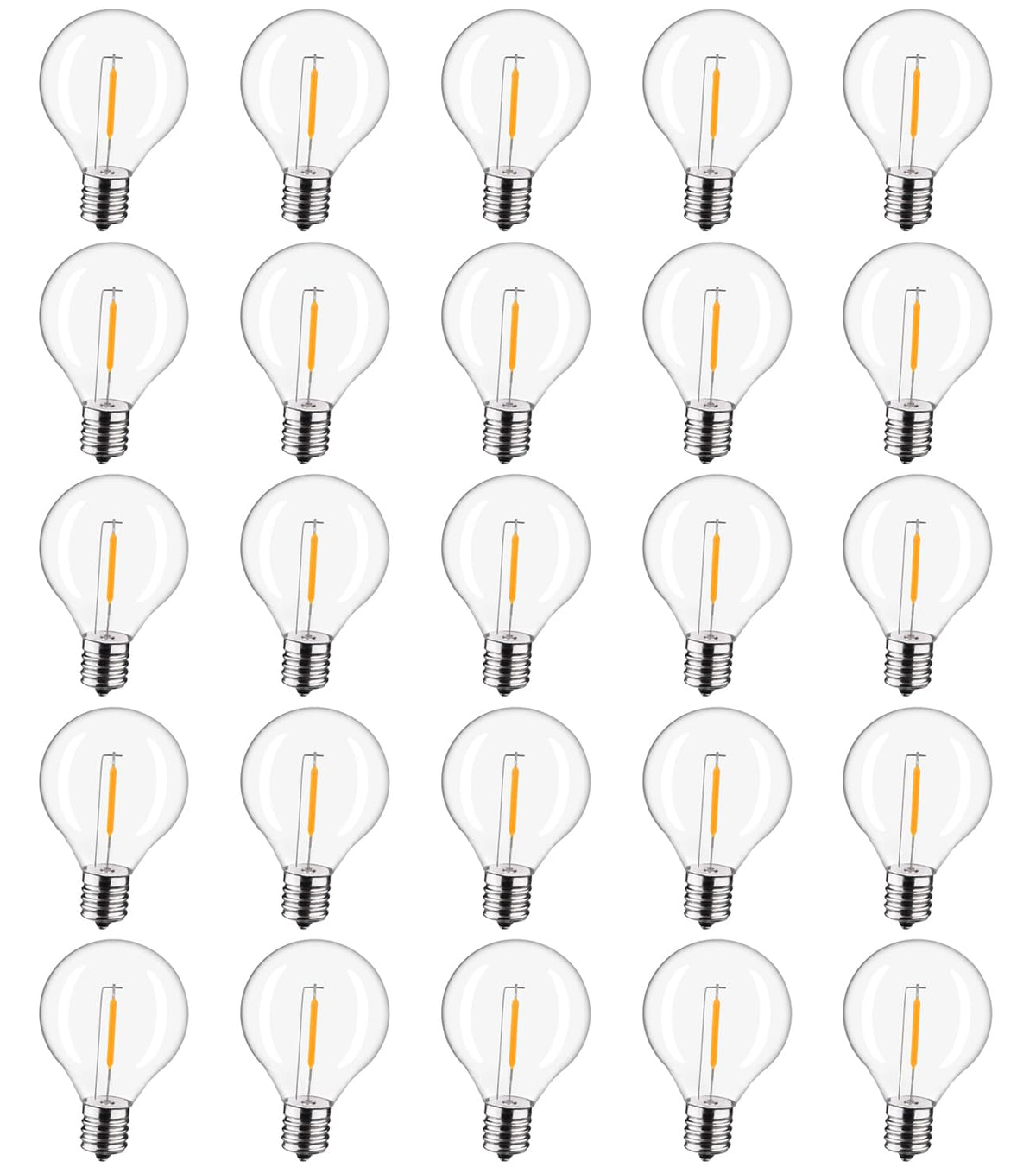 Lieidi 25-Pack G40 Led Replacement Light Bulbs, E12 Screw Base Shatterproof Globe Bulbs For Outdoor String Lights, 0.6Watt Equva