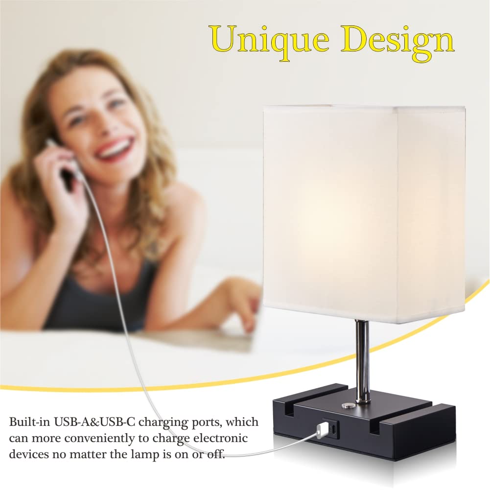 Lifeholder Bedside Lamp, Usb Lamp Include Warm White Bulb, White Shade Table Lamp Built In Usb & Type-C Ports, Nightstand Lamps