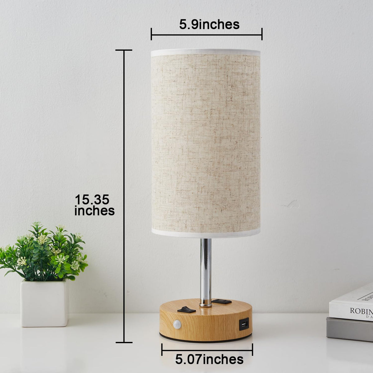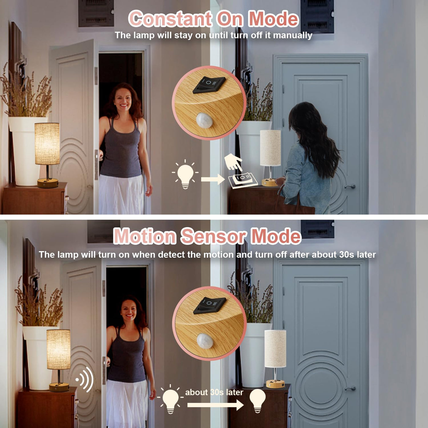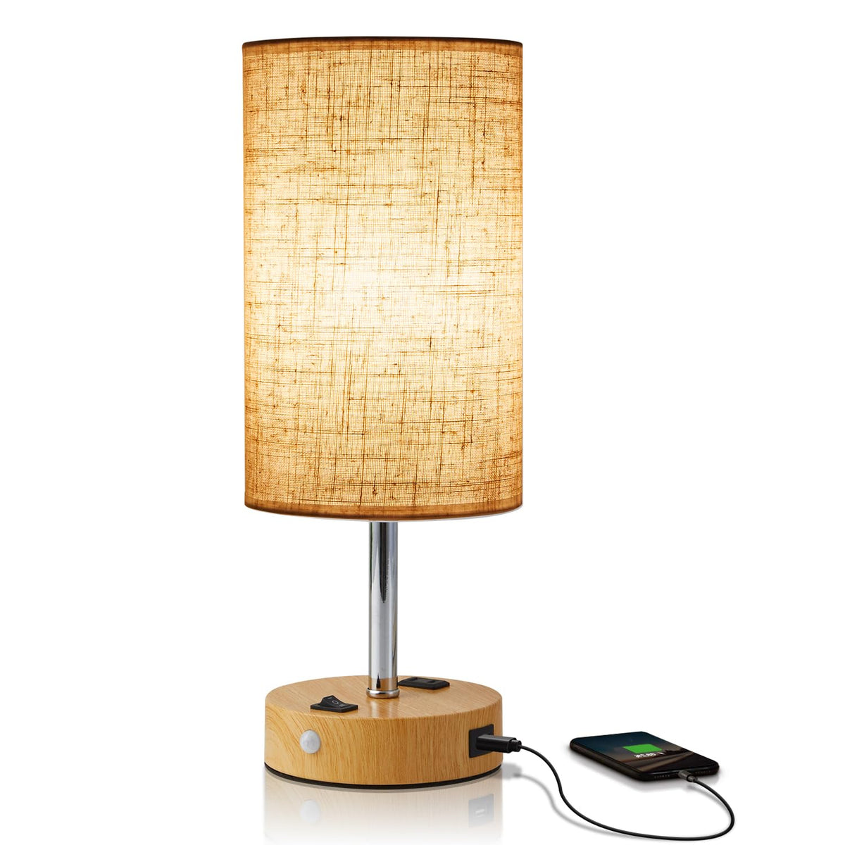 Lifeholder Motion Sensor Usb Lamp With Led Bulb, Fabric Shade & Ac Outlet For Bedroom & Bathroom