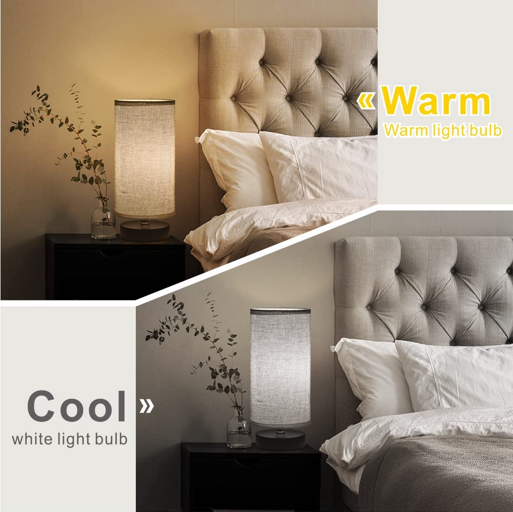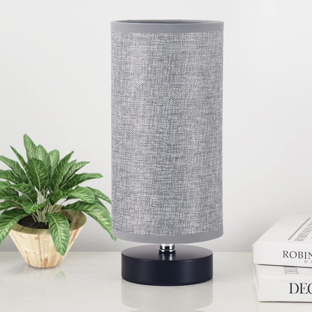 Lifeholder Table Lamp, Bedside Nightstand Lamp, Simple Desk Lamp, Cylinder Table Lamp For Bedroom Living Room Office Study, Grey