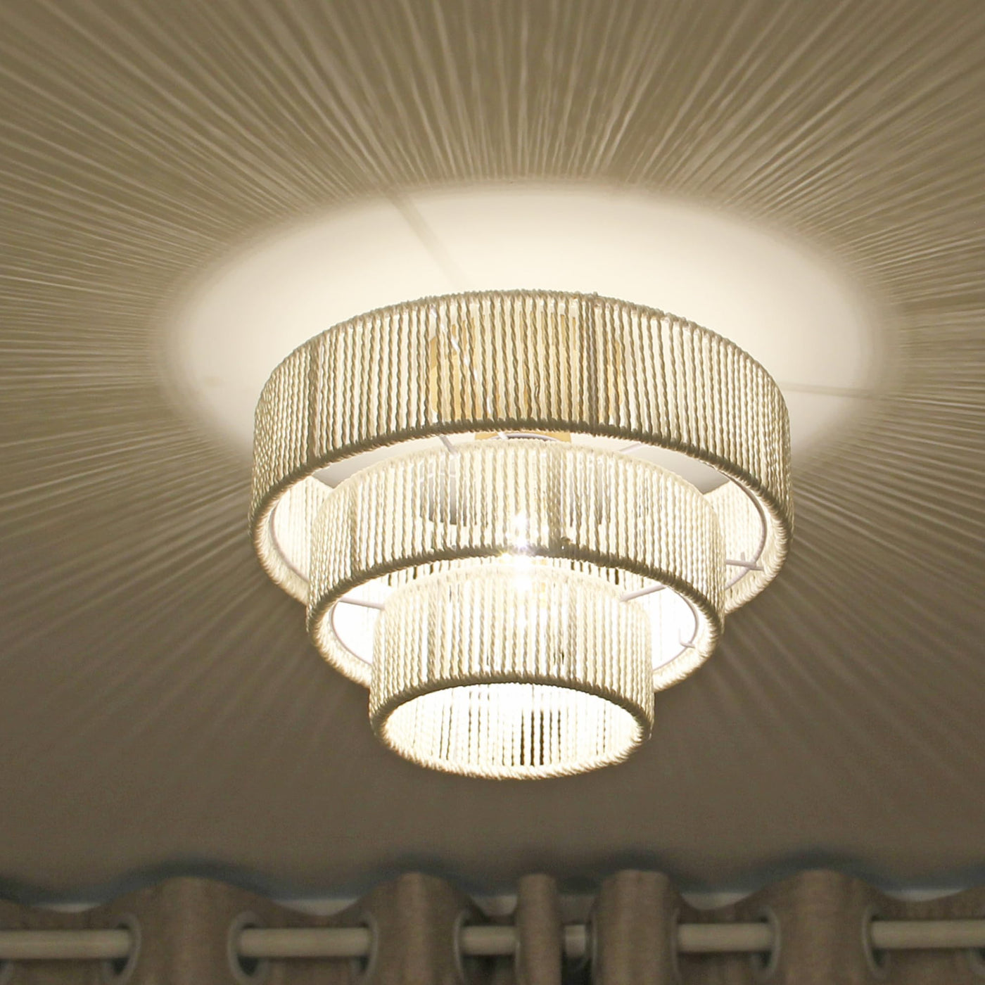 LigeroLuz Rattan Ceiling Light Fixture, Boho Design, LED Variable Bulb, 12.4in-Style B, White, Model CL-02